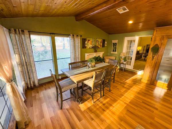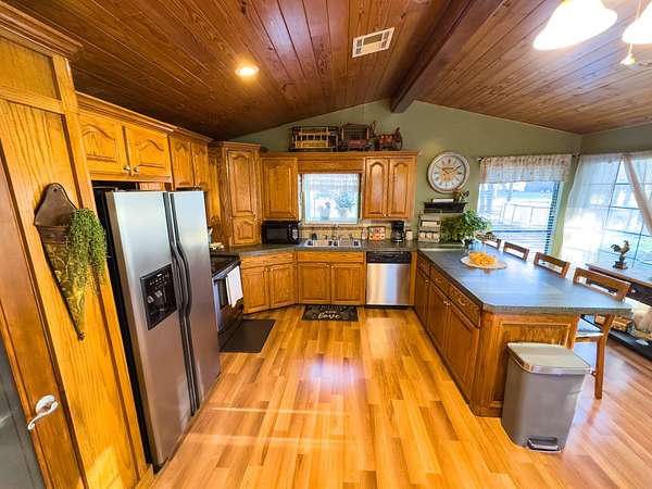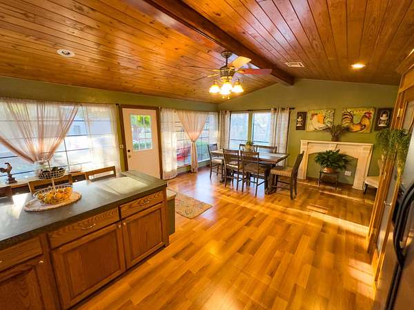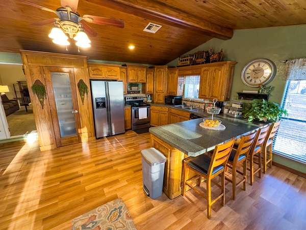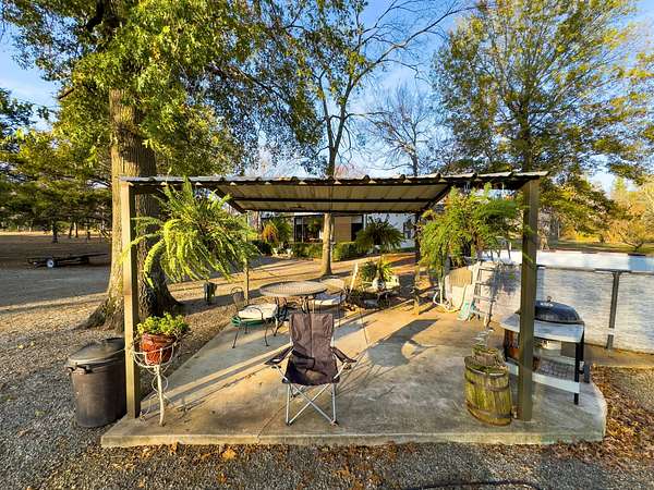 Set on a spacious corner lot near Eufaula Lake, this 2.5 +- acre property in McIntosh County offers a charming ranch-style home paired with plenty of usable space and quality improvements. The 1,508 +- sq ft, steel-framed home features 2 bedrooms and 2 bathrooms, with beautiful wood flooring in the kitchen and bathrooms and soft carpet in the living areas and bedrooms. The kitchen is warm and inviting, showcasing wooden cabinetry, a pantry room, and an easy flow into the living room. The master bedroom is generously sized and includes a luxurious master bathroom, providing a comfortable retreat within the home. Both the front and back porches offer peaceful spots to relax, enjoy morning coffee, or take in quiet evenings in the country. A 30' x 45' steel-framed metal shop sits on the property, complete with two overhead doors in the front and one in the back. The size and layout make it perfect for storing vehicles, equipment, or even your boat--an ideal feature with the lake just minutes away. A circle drive and road frontage add convenience, while the large yard provides ample room for children, pets, or outdoor activities. Situated only a few minutes from Eufaula Lake--one of Oklahoma's top spots for fishing, boating, and recreation--this property is also just 14 +- minutes from the town of Eufaula, 1 hour and 10 +- minutes from Fort Smith, AR, and 1 hour and 20 +- minutes from Tulsa. With its quality home, great shop building, and unbeatable location near the lake, this property would make a wonderful family home, peaceful country retreat, or the perfect lake house getaway! All showings are by appointment only. If you would like more information or would like to schedule a private viewing please contact Ruben Daniels at (580) 747-3407 .