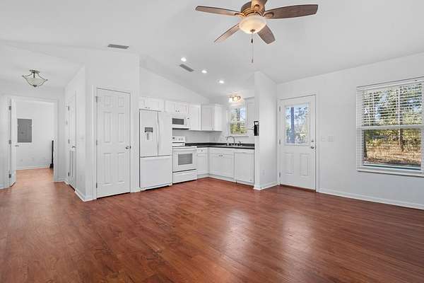 This quaint one bedroom, one bath offers simple southern charm on just over two acres, in the heart of Perry. Built in 2017, the home features updated appliances, an efficient layout, and a warm, inviting feel. The open setting provides privacy and space to enjoy the outdoors while maintaining a low-maintenance lifestyle. The property also includes a detached storage shed, offering convenient space for tools, equipment, or additional storage. Ideal for down-sizing, starter home, or a peaceful retreat, this property offers flexibility, comfort, and room to make it your own. Within minutes of local shopping and the hospital.