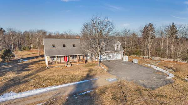 Set high above Great East Lake on approximately 25 acres of rolling fields and woodland, 422 Buzzell Road offers a rare blend of privacy, beauty, and thoughtful craftsmanship in Acton. A long, winding drive opens to a peaceful plateau where wildlife is a daily sight and the views stretch across your own expansive landscape. Perennial gardens, raised vegetable beds, and a well-established orchard create a property that feels both serene and self-sustaining, while a recently drilled deep well with strong yield supports the home and grounds with ease. Inside, this inviting three-bedroom, 2.5-bath Cape balances classic New England charm with modern comfort. Warm living spaces are anchored by a premium pellet stove and complemented by upscale black stainless steel appliances in a spacious, well-appointed kitchen with ample counter space and a large pantry. The first-floor primary suite and laundry allow for easy one-level living, while the upper level includes additional bedrooms and a media room ideal for movie nights or quiet retreats. A finished room in the basement provides flexible space for a home office or gym, and an unfinished bonus room above the heated three-car garage is already plumbed, wired, and ready for future expansion. Built with efficiency in mind, the home features an ICF foundation, radiant heat, underground utilities, and generator readiness. Spend mornings and evenings on the full-length covered porch overlooking your acreage, enjoying unforgettable sunrises and vibrant rainbows. With nearby boat launches, charming town centers, and coastal beaches within an easy drive, this exceptional property delivers refined country living with outstanding access to the best of Maine and New Hampshire.