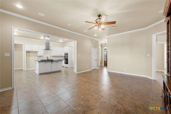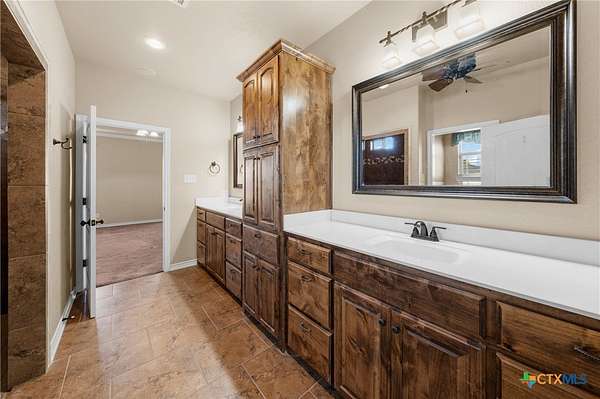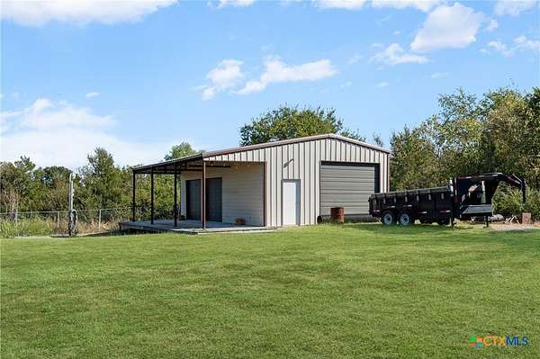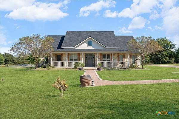 Discover refined country elegance in this stunning 3-bedroom, 2.5-bath custom home perfectly situated on 2.5 beautifully manicured acres. A stately brick driveway welcomes you home and a timeless front porch sets the tone for the quality and craftsmanship found throughout. Inside, you'll find soaring ceilings, abundant natural light, and elegant tile floors that create a warm yet sophisticated ambiance. The open-concept layout is designed for both comfort and entertainment, highlighted by a gourmet kitchen featuring custom cabinetry, expansive countertops, and a layout that seamlessly connects to the dining and living areas. The primary suite offers a luxurious private retreat with a spacious ensuite bathroom and envious walk-in closet for two. Two additional bedrooms, a spacious guest bath, and a conveniently positioned powder room provide comfort and flexibility for family or guests. Step outside to enjoy the peace and privacy of the expansive grounds. A secondary detached garage-shop, plus the 24x36 workshop provides ample space for hobbies, storage, or business needs, while the picturesque pond adds to the tranquil country setting. The large backyard and expansive brick-paved patio are ideal for relaxing evenings or gatherings with friends and family. Located just minutes from Temple's shopping, dining, and medical centers, this exceptional property offers the perfect blend of luxury, functionality, and country charm all within easy reach of city conveniences. Experience the elegance of 422 Callahan Loop where modern design, acreage, and timeless appeal come together to create the ultimate country estate.