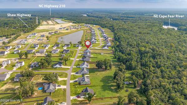 Interstate I-40 to Exit 408 Rocky Point, Highway 210 East for (3) Miles, Go over Cape Fear River bridge, then first Left on Shaw Highway for 2.5 Miles. Left into Community of Brick Chimney Landing