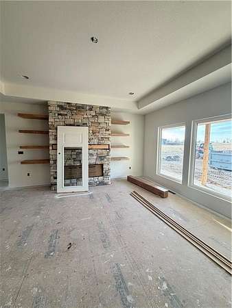 Welcome to Deer Creek Lake! This stunning 3 bedroom, 2.5 bath home offers 2,200 square feet of beautifully designed living space with thoughtful custom details throughout. From the moment you arrive, you'll love the two large patios-one in the front and one in the back-perfect for relaxing, entertaining, and taking in the peaceful lake views. Inside, the living room features a gorgeous stone fireplace with floating wood shelving, creating a warm and inviting focal point. The kitchen is truly a standout with marble countertops, a wall oven, built-in microwave, cooktop, and a huge pantry complete with custom shelving and plenty of outlets-designed for both convenience and style. The dining room showcases a custom accent wall, adding just the right amount of character, while the spacious primary suite continues the trend with its own accent wall, a massive bathroom with a beautiful wood vanity, and an oversized closet that conveniently connects directly to the laundry room. Every closet in the home includes custom shelving, offering incredible organization throughout. Large windows fill the home with natural light and provide beautiful views of the lake, making this home feel both bright and serene. The full unfinished basement offers excellent potential and would be perfect for additional storage or future finishing.
