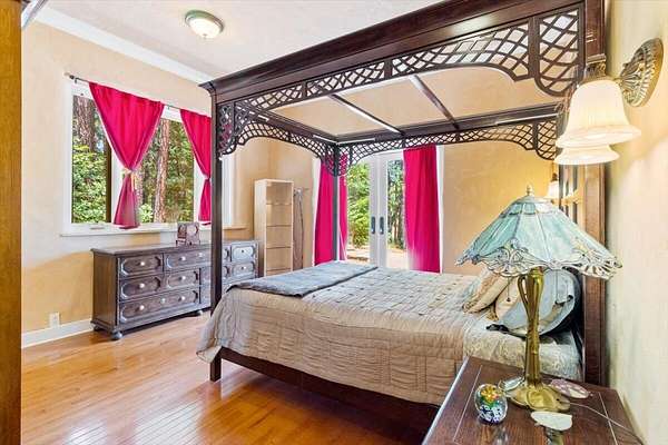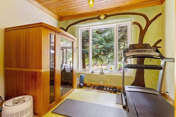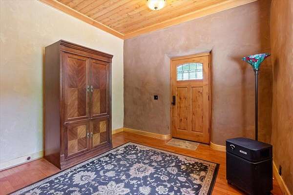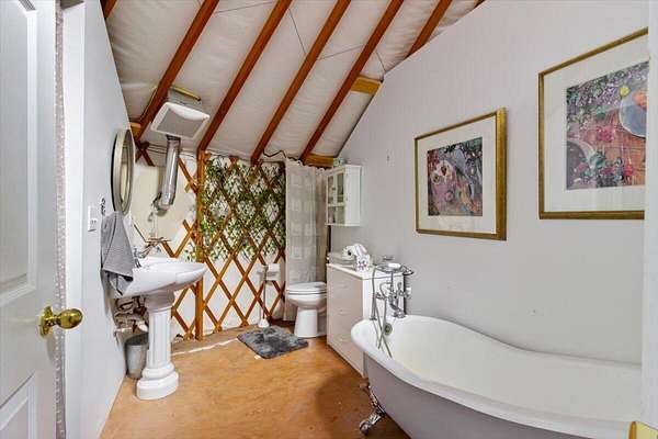 SANCTUARY. There is a feeling of peace and rightness here. This unique property, from the thoughtfully designed layout to the environmental construction, welcomes you like a haven. Retreat. Multi-family living. Compound. From the inviting covered porch, step into the commons house -a great room and stellar kitchen plus a bathroom and 2 dining areas. Granite counters with plenty of space for multiple cooks to work, custom cabinetry, soaring ceilings, a Viking stove, well planned storage, windows, passive solar and doors in each direction. Here is where everyone gathers. Then, as bedtime draws near, head to the bedroom house, which boasts 2 en suite bedrooms plus a sewing/craft room and meditation/exercise room with a sauna. One could build multiple bedroom houses around the commons house. Nearby is a self-contained yurt with a kitchen and bathroom as well as a studio style bedroom/living area. All on your own private acreage. Gated. Solar.