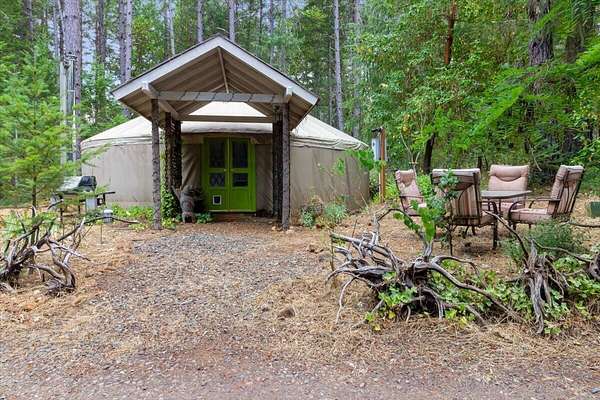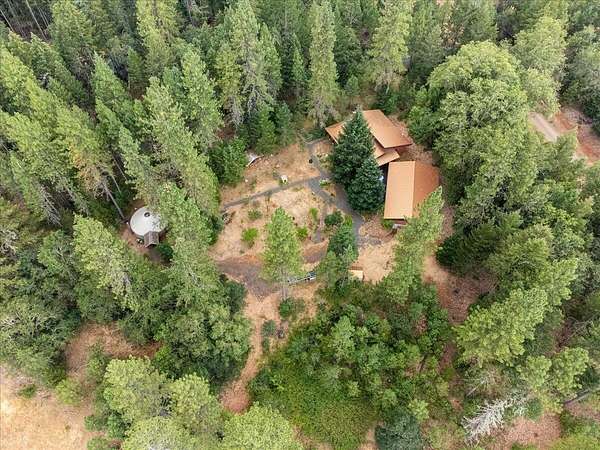Exit Hwy 199 1/2 mile west of milemarker at wide turnout in the road on the right, at sign Butcherknife Creek Rd. Follow gravel road to right, stay on ''Old Onion Mt Rd'' go uphill to address on righ