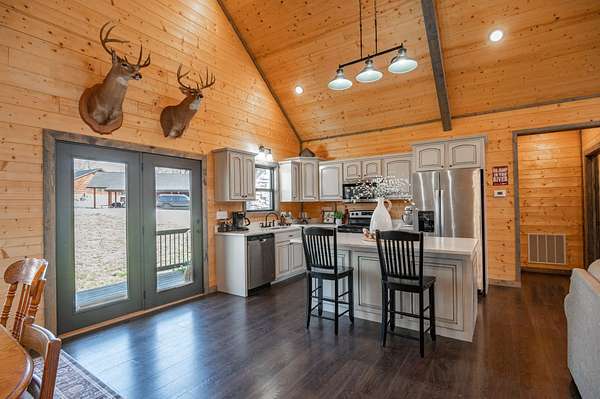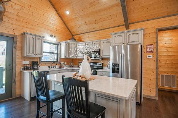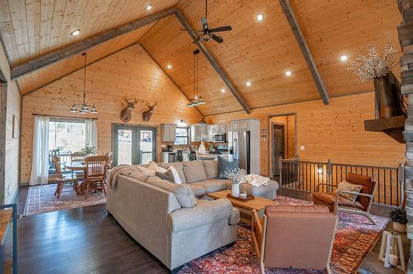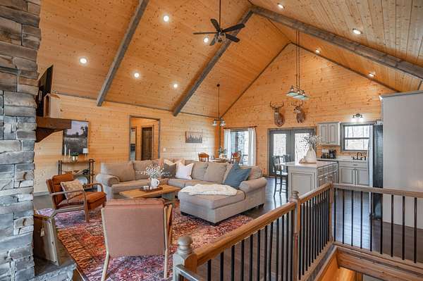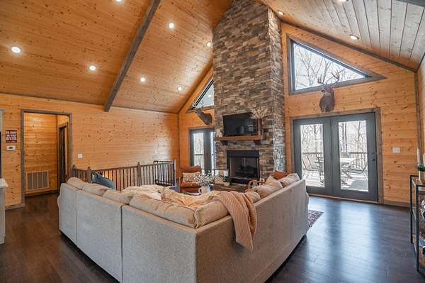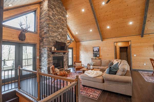Located just minutes from Big Springs National Park and the beautiful Current River is this splendid 5 bedroom, 3 bath home. Built in 2023 and sitting on 6 +/- wooded acres. This open floor plan design has over 3000 square feet of living space. You will love the oversized primary bedroom and bath with a large custom tile shower and separate jetted tub. The expansive kitchen with a center island, walk in pantry and quartz countertops flow seamlessly into the dining and living room area. The openness is great for entertaining your family and friends. The beautiful windows draw plenty of natural light with a floor to ceiling stonework fireplace it's simply a perfect fit for this home. The lower level has 2 additional bedrooms and a large family room that is perfect for family movie night or maybe your kids need more play space. If you enjoy outdoor lounging the large deck area off of the main level living area is easily accessible, shaded and private. Call for your personal viewing.