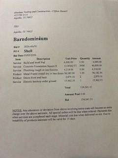 Nearly 12 acres ready to build on! This property offers a customizable 2000 sqft.barndominium shell with carport dried in to be built, which the price is reflecting.Seller is the contractor and can finish out the construction as well.There are no known restrictions, giving you the freedom to build and develop as you choose.The contractor is bonded and insured and does require 10% upfront.