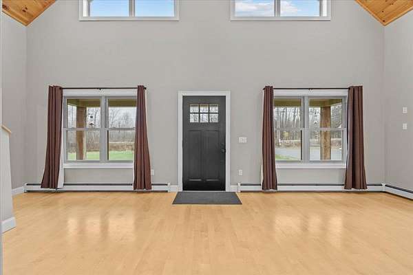 Discover the perfect blend of comfort, craftsmanship, and versatility on this serene, nearly 5-acre private retreat. This beautifully designed, high-quality home is loaded with features that cater to both relaxation and functionality. Step into the expansive 18x24 family room addition with radiant floor heating--perfect for cozy gatherings year-round. The heart of the home boasts a stunning open-concept kitchen and dining area with soaring 21-ft vaulted ceilings, ideal for entertaining. Upstairs, an exclusive master suite offers privacy and luxury with dual walk-in closets and a spacious en-suite bathroom. High-efficiency utilities and mini-split systems ensure year-round comfort and energy savings. The fully finished basement adds even more value with a large entertaining bar, recreation space, and a gear room with direct outside access--perfect for outdoor enthusiasts. But the true showstopper? A dream 34x46 detached heated garage, featuring high ceilings, a car lift, its own bathroom, and a charming kitchen area ready for a home-based baking or cooking venture. The level, picturesque land is ideal for a small farm or homestead, offering endless possibilities. Whether you're looking for peace and privacy, space to play and entertain, or room to pursue your passions, this one-of-a-kind property truly has it all. Don't miss your chance to own this exceptional home--come experience it for yourself!