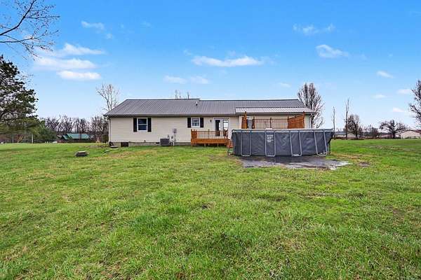 Welcome to your private slice of country living! Nestled on 2.5 beautiful acres, this freshly updated 3-bedroom, 2 full bath home offers the perfect blend of comfort, space, and outdoor enjoyment. Step inside to find fresh paint throughout, creating a bright and inviting atmosphere. The spacious layout features a cozy family room, dedicated dining area, and a well-appointed kitchen complete with a convenient bar--perfect for casual meals, entertaining guests, or morning coffee. Outdoors, the possibilities are endless. Enjoy the peaceful setting from your brand-new deck, overlooking the expansive property. Cool off and relax in the new above-ground pool, making this home ideal for summer gatherings and weekend fun. With plenty of room to roam, garden, or simply enjoy the privacy of your own acreage, this property offers the tranquility of country living while still being close to everyday conveniences. Additional updates include; Metal Roof -2023,Dishwasher -2025, Electric Range- 2025, Hot Water Tank -2022, HVAC- 2016, Front Porch Decking- 2025Rear deck-2025, Pool- 2025 Fresh paint 2026. Don't miss the opportunity to make this move-in-ready home yours!