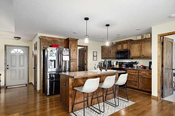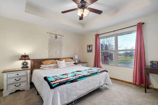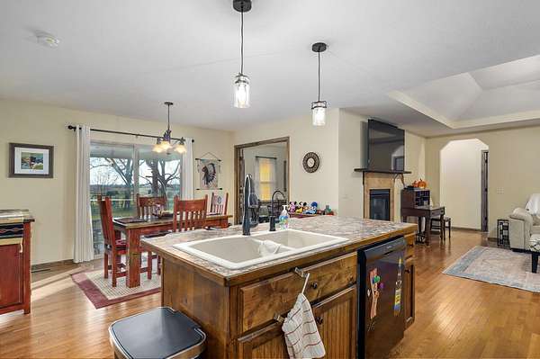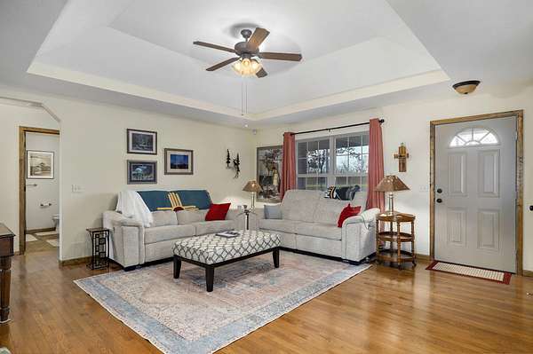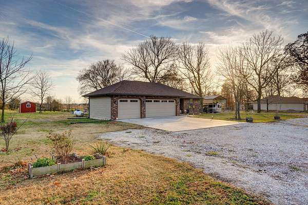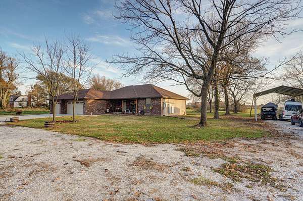 Experience elevated country living at this beautifully crafted ranch nestled on 3 private acres just outside Clever. This thoughtfully built 1,650 sq ft home offers the ideal mix of rustic serenity and modern comfort. As you approach, you'll be struck by the charm of the covered front porch -- an inviting space for morning coffee or quiet evenings, surrounded by acreage and open sky. The exterior blends brick and vinyl siding, giving a classic look that stands the test of time. Step inside to discover a flawlessly designed interior where hardwood, tile, and plush carpeting harmonize across the open living spaces. Tray ceilings add elegance, while large windows flood the rooms with natural light and frame peaceful views of your land. A gas fireplace anchors the living area, creating a warm and welcoming gathering spot for family and guests. The kitchen is a delight: rich, solid-wood cabinetry, a clean layout, and a design that balances function and beauty. Whether you're hosting dinner or cooking for everyday, there's space and character to spare. Adjacent is a flexible room that could be a formal dining area, a home office, or a fourth bedroom -- whichever fits your lifestyle best. Three additional bedrooms and two full bathrooms offer plenty of room for rest, work, or creativity. The master suite is comfortably sized, and each bedroom is served by well-designed closets and finishes. The bathrooms provide tile flooring and thoughtful fixtures, making daily routines feel more refined. One of the standout features of this property is the covered back patio -- a perfect spot for grilling, relaxing, or birdwatching, with a view across your serene parcel. With gently rolling terrain and a few mature trees, the land feels spacious yet manageable. The home also includes a RV carport that features 30 AMP power outlets and a 3 car garage offering plenty of storage and space for cars. Don't miss your chance to own this little slice of heaven, call to schedule a showing!