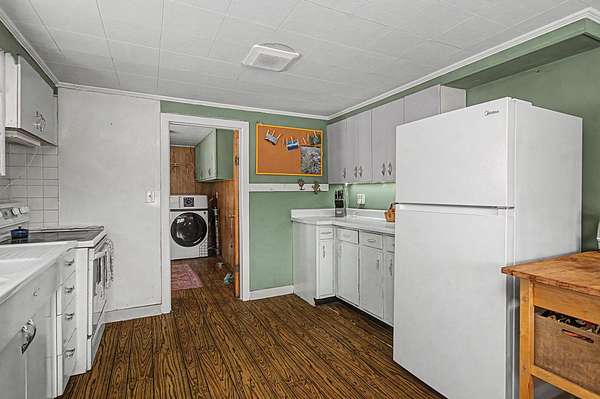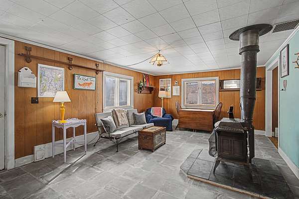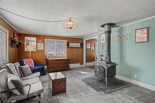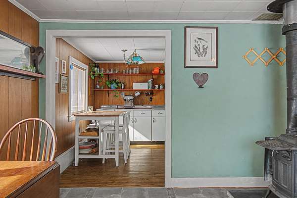 Charming and move-in ready, this cozy Middlesex cape sits on 1.5 acres with a mix of open, level yard and hilly wooded backdrop, offering both usable space and privacy just minutes from Montpelier. Inside, a bright entry opens to a spacious living room with a wood stove and large windows that fill the home with natural light. The generously sized eat-in kitchen offers ample counter space, an original cast iron sink, and a light-filled dining area with coffee bar. Just off the kitchen, the combined laundry and mudroom provides access to the yard and includes a brand new all-in-one washer/dryer for added convenience. On the opposite side of the home, you'll find two nicely sized bedrooms and a 3/4 bathroom. Upstairs, a large open area creates the perfect study or bonus space, and beyond you'll find the spacious third bedroom. Over the past year, major improvements include new flooring in the entry and living areas, a new propane boiler, upgraded electrical with a new panel, and added insulation with moisture management in the basement and crawl space--giving buyers real value and peace of mind. Outside, the yard offers a fenced area for pets, a lean-to for extra storage or workspace, a large storage shed, and an open deck area that's ideal for summer dining and gathering while taking in mountain views across the open field. Located minutes to local favorites like Red Hen Bakery, Roots Market, and Camp Meade, with easy access to I-89, this property combines classic Vermont charm with meaningful updates in a convenient location!