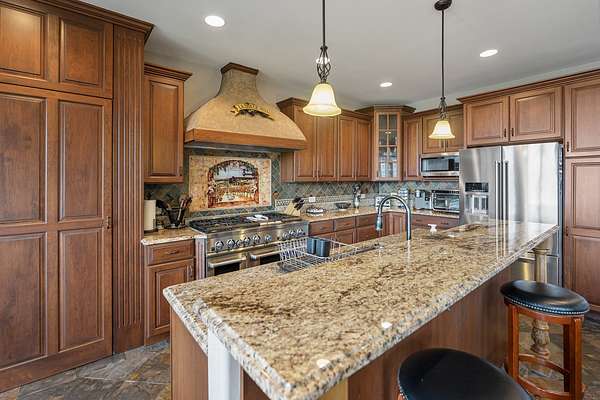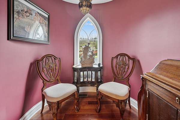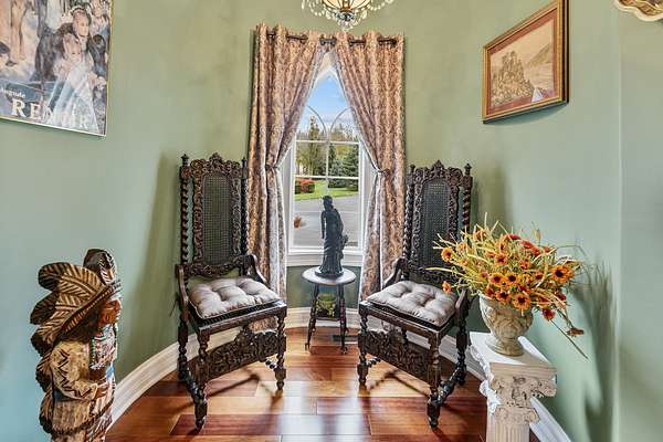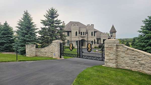Once upon a time Lord and Lady Dittmer had a dream, to build a Castle of Love, and they did! This stunning one-of-a-kind custom built home sits on a magnificent 2.73-acre estate overlooking nature and conservation land bringing all the peace, privacy and tranquility with it. Your private gated entrance welcomes you home with a grand circular driveway and six foot bronze fountain, overlooking gardens and grape arbors. The custom front door is just the beginning of the quality craftsmanship you are about to experience. Come inside! Gleaming slate and Brazilian Cherry and Walnut hardwood flooring, Corinthian columns, turrets and arches entice you. Let's discover the rest together... . Ready to become Royalty, come on in!.
