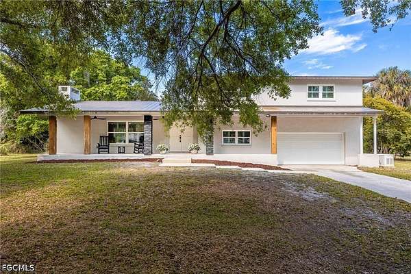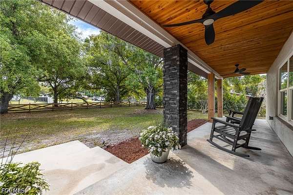 Set on an expansive 4.95-acre homesite, this exceptional Buckingham estate offers the rare opportunity to embrace true privacy, freedom, and luxury living, all in one stunning, move-in-ready property. Surrounded by lush, mature trees and wide-open green space, this property is the ultimate equestrian paradise or private retreat for those seeking a serene, country lifestyle without sacrificing modern comfort and style. Completely redesigned in 2022, this beautifully updated 4-bedroom, 3-bath, two-story home showcases a thoughtfully designed split and open floor plan, blending functionality with elevated finishes throughout. Step inside to discover a light-filled interior featuring neutral tones, rich wood-look flooring, and custom built-ins, creating a warm yet sophisticated atmosphere. The spacious living area flows seamlessly into the heart of the home, a fully renovated, designer kitchen complete with high-end stainless steel appliances, a propane cooktop, sleek cabinetry, a large center island with a built-in wine cooler, and elegant lighting, making it perfect for both everyday living and entertaining. The primary suite offers a peaceful retreat with spa-inspired touches, while the additional bedrooms provide flexibility for guests, a home office, or growing families. Every detail has been carefully curated, including hurricane-impact windows and doors, a metal roof, and a whole-home generator for added peace of mind. The home also features a propane dryer, enhancing efficiency and convenience. Step outside and experience the true magic of this property. The expansive grounds provide endless possibilities, whether you envision creating a custom pool and spa, designing your dream outdoor oasis, or utilizing the land for horses, recreational vehicles, or hobby farming. A detached outbuilding offers incredible versatility, ideal for a workshop, storage space, man cave, or creative studio. Perfectly positioned in the highly desirable Buckingham area of Fort Myers, this property delivers the best of both worlds, peaceful, rural living with easy access to shopping, dining, I-75, and all that Southwest Florida has to offer. If you've been searching for space, privacy, and a beautifully updated home with room to live, grow, and explore, 4220 Staley Rd is a truly rare and remarkable opportunity.