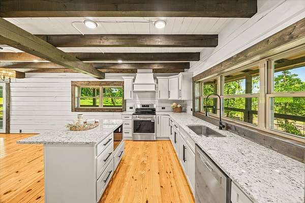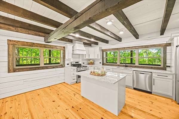 If you are looking for an authenticate log home and lots of room to roam this is it! Home is nestled on 8 acres featuring a matching barn.The expansive wrap around porch is the perfect place for relaxing and enjoying the views. The main level of the log home has been completely renovated! Featuring exposed beams, Pine floors, a brand new kitchen with granite countertops, a large walking pantry and Nice laundry area with a half bath. As you walk up stairs on the heavy timber treads the upper level features a common area great for an office or sitting room, 2 large guest bedrooms with a full bath and a Huge primary bedroom with ensuite bathroom with a custom tile shower. Just minutes to the City of Celina and Dale Hollow Lake! Seller is also offering to sell Home and 24 acres for $749,900