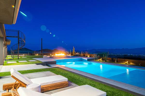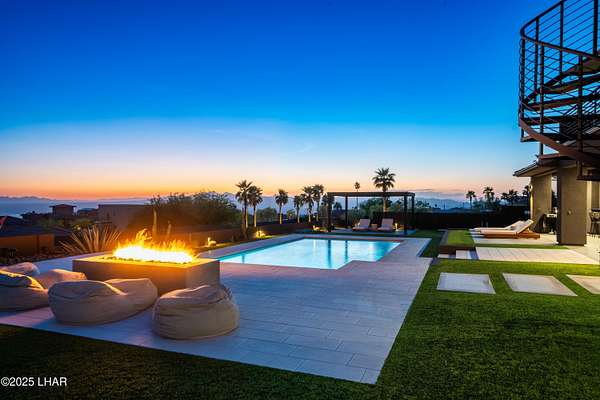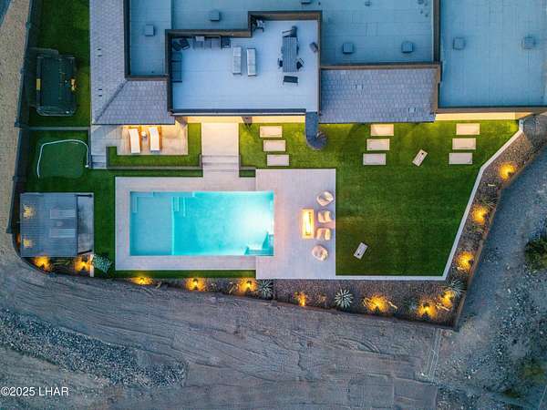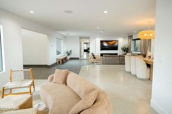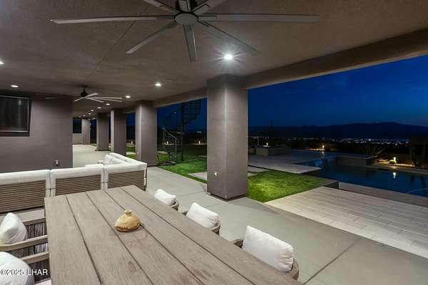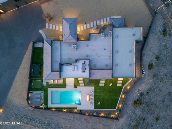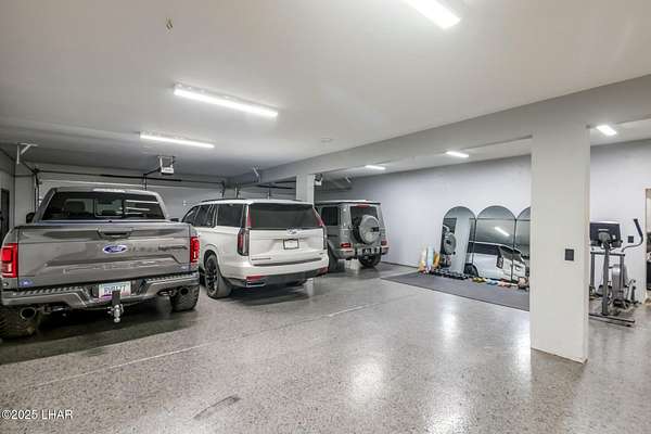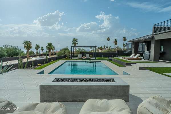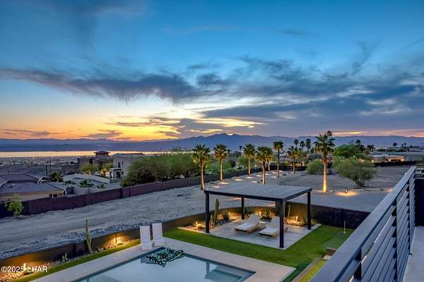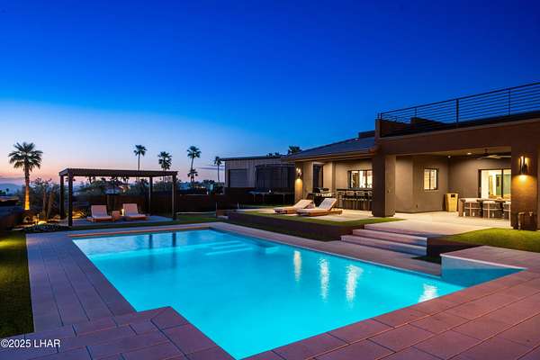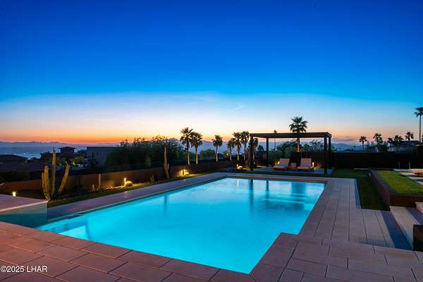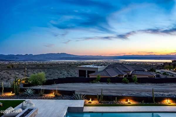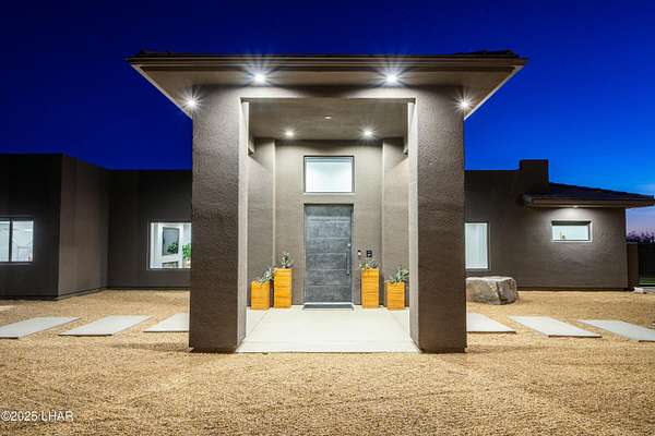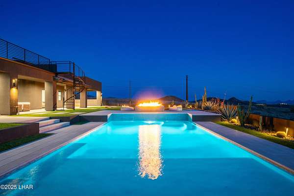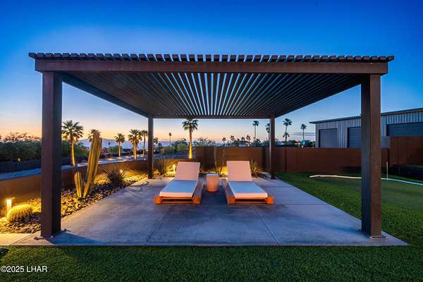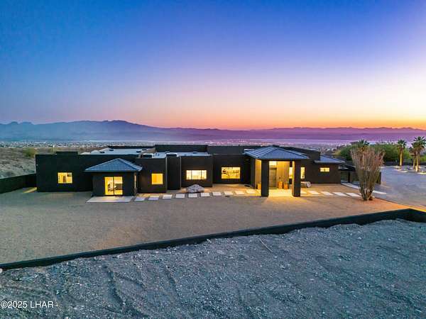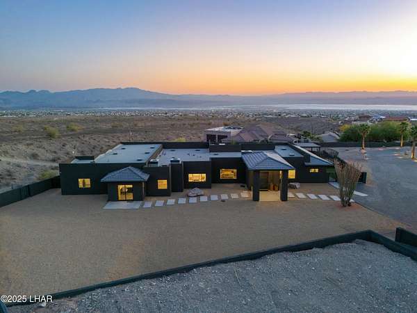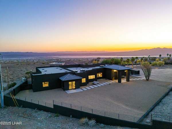 7,300 Square Foot Garage!!! Welcome to the first-of-its-kind desert estate on 3.4 acres in Lake Havasu's exclusive residential agricultural zone. This modern oasis blends upscale living with serenity and panoramic lake and mountain views. The 5,637 sq ft main home features three en-suite bedrooms plus an office, designed for comfort and privacy. A detached guest house includes a full kitchen, bedroom, living area, and stunning views. Outside, enjoy a resort-style pool, large covered patio, and full-blown skatepark that the owners could convert into 3 pickleball courts if desired. The property is fully walled for privacy and offers ample land for future development ideal for workshops, stables, or added guest quarters. Car and toy lovers will be thrilled by the remarkable 7,500+ sq ft garage with 14 tons of climate control and room for everything. Located in an extremely exclusive area, this is luxury desert living at its fines private, peaceful, and absolutely unforgettable. Don't miss this rare compound.