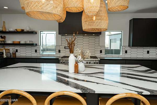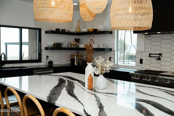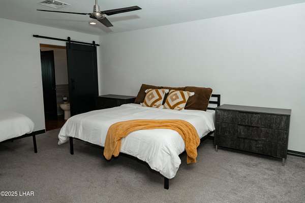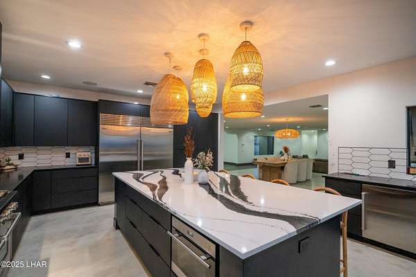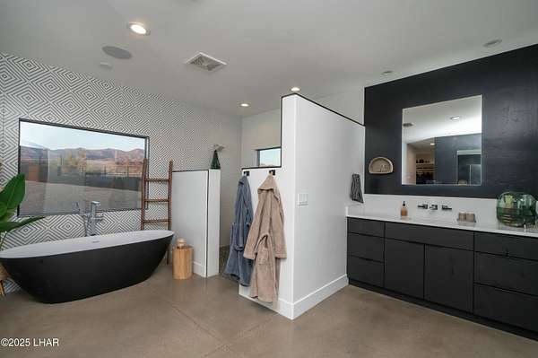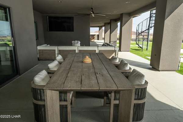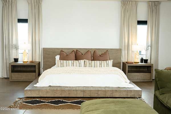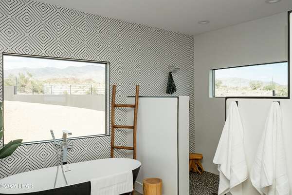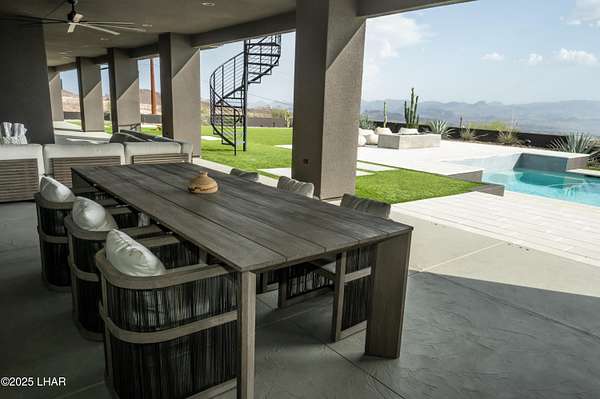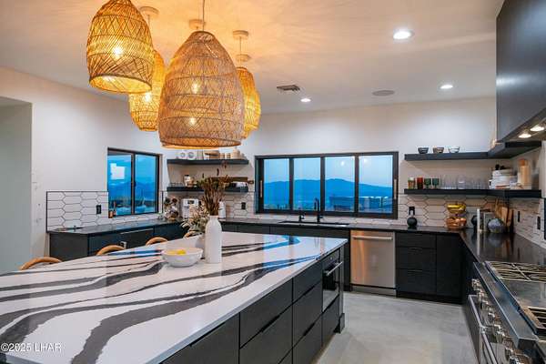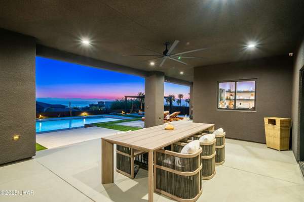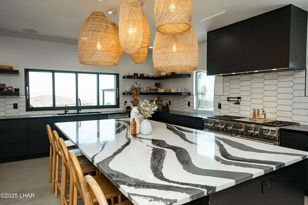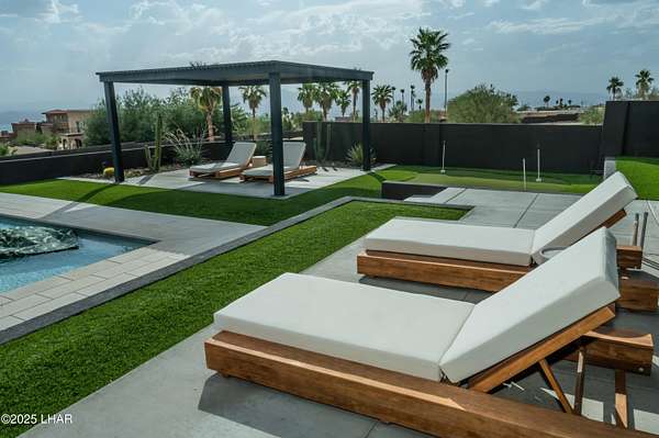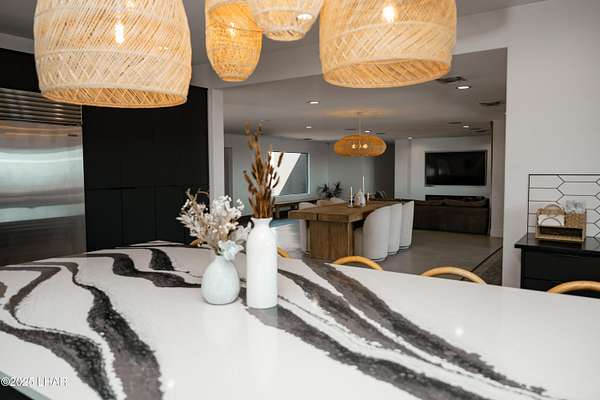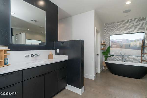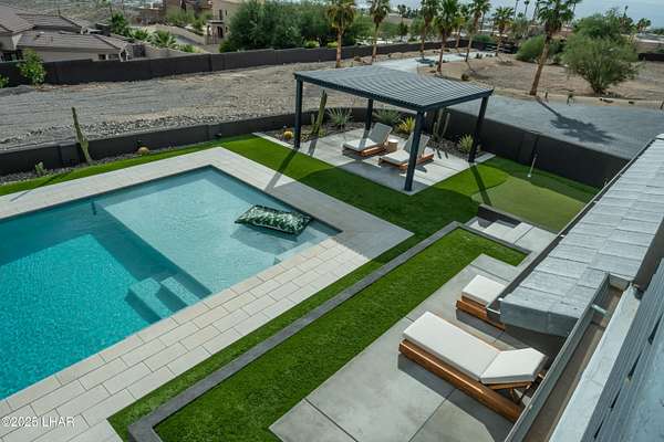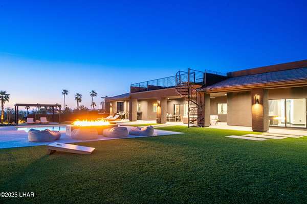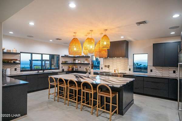 7,300 Square Foot Garage!!! Welcome to the first-of-its-kind desert estate on 3.4 acres in Lake Havasu's exclusive residential agricultural zone. This modern oasis blends upscale living with serenity and panoramic lake and mountain views. The 5,637 sq ft main home features three en-suite bedrooms plus an office, designed for comfort and privacy. A detached guest house includes a full kitchen, bedroom, living area, and stunning views. Outside, enjoy a resort-style pool, large covered patio, and full-blown skatepark that the owners could convert into 3 pickleball courts if desired. The property is fully walled for privacy and offers ample land for future development ideal for workshops, stables, or added guest quarters. Car and toy lovers will be thrilled by the remarkable 7,500+ sq ft garage with 14 tons of climate control and room for everything. Located in an extremely exclusive area, this is luxury desert living at its fines private, peaceful, and absolutely unforgettable. Don't miss this rare compound.