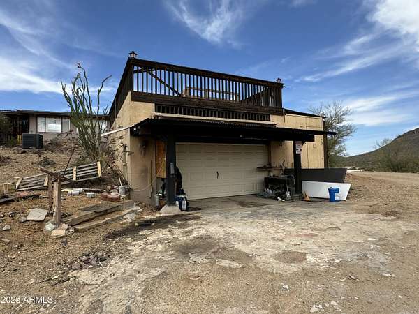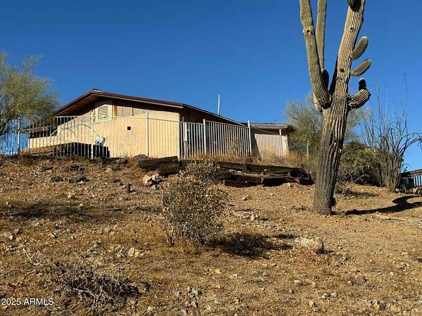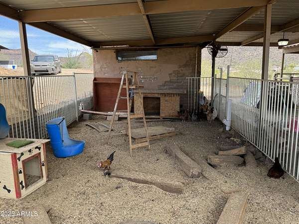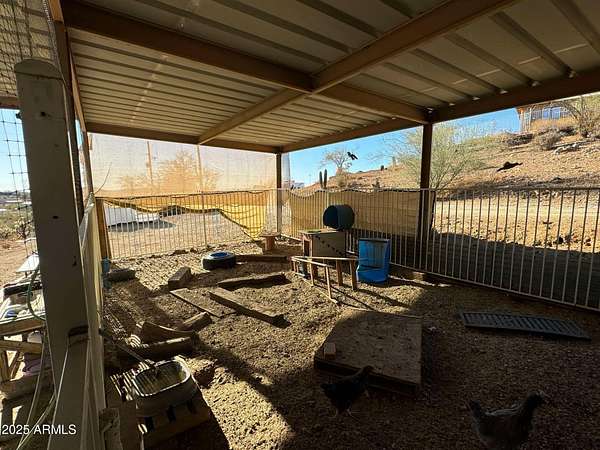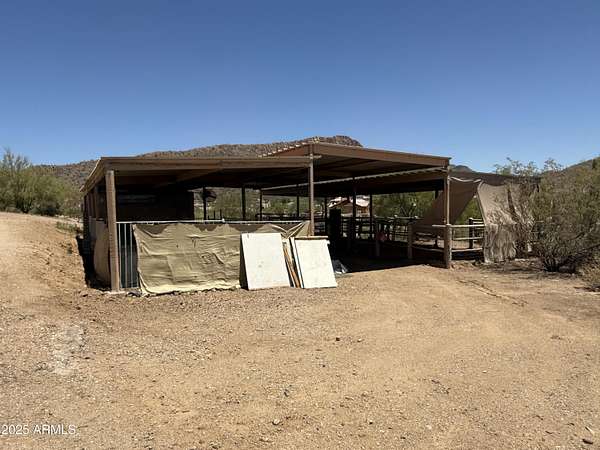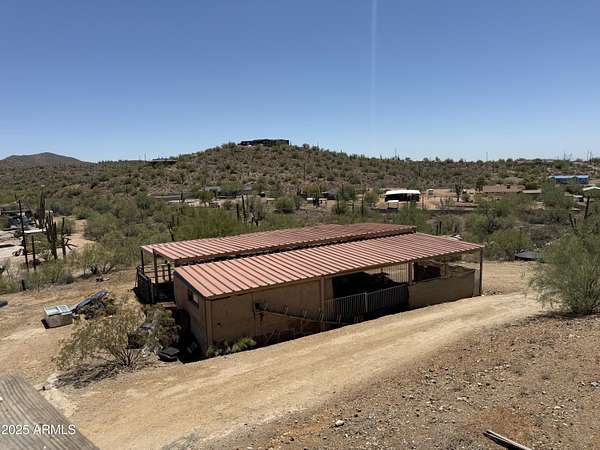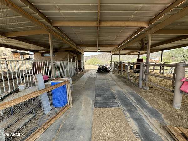 No HOA!!! Horse Facilities!! That's right, this property has gorgeous 360 degree views, the elevated lot has plenty of room for multiple horses. Tired of muddy stalls/arena when it rains? This property solves that problem as the horse areas do not turn into mud pits. The 3-bedroom, 2-bath home has a metal roof, stucco exterior, tile and wood flooring, triple-pane windows and a wood burning fireplace. The garage-top patio is a spacious entertaining spot with amazing views. Enjoy a 2-car carport plus a 2-car garage. The horse facilities include a large dry arena, 3 stalls, turnouts, large tack room with a large secure, enclosed chicken coup. RVs are welcome with hookups.