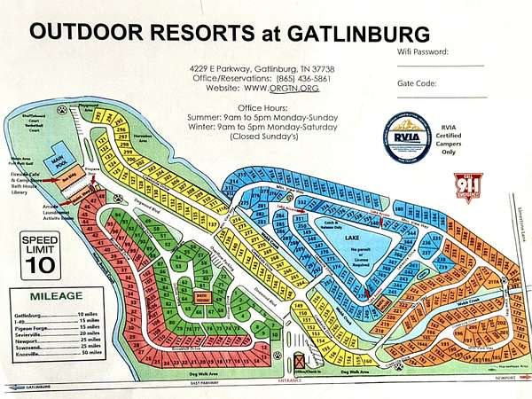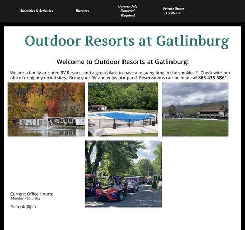 From downtown Gatlinburg, take East Parkway (US-321) heading east toward Pittman Center. Continue on East Parkway approximately 8 miles. Outdoor Resorts at Gatlinburg will be on the left. Enter to the gated entrance at 4223 East Parkway.