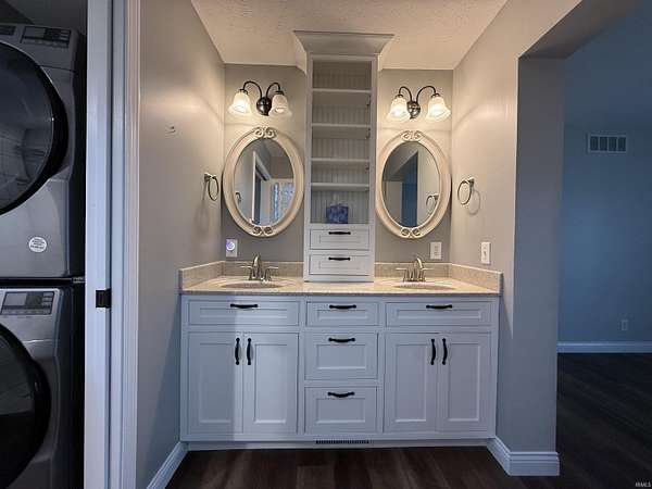 - Attic Storage, Breakfast Bar, Ceiling Fan(s), Closet(s) Walk-In, Countertops-Solid Surf, Custom Cabinetry, Deck Open, Dishwasher, Disposal, Dryer Hook Up Electric, Garage Door Opener, Garage Utilities, Jet Tub, Landscaped, Laundry-Stacked w/, Main Floor Laundry, Pantry-Walk in, Patio Open, Porch Covered, RV Parking, Range-Gas, Refrigerator, Split BR Floor Plan, Stand Up Shower, Tub/Shower Combination, Twin Sink Vanity, Washer Hook-Up, Water Heater Gas