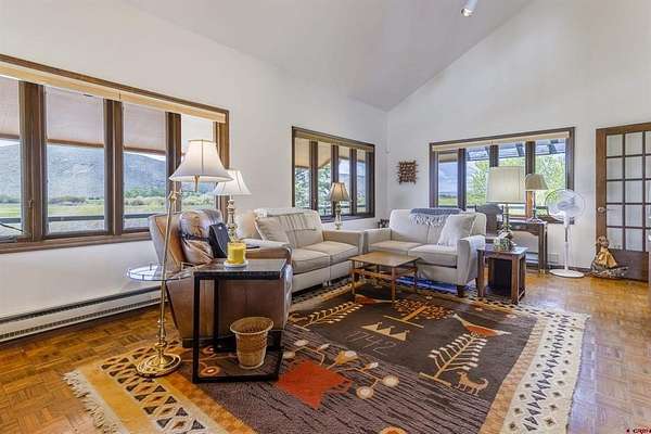 Brian Cooper, Bluebird Real Estate, LLC, C: 970-275-8022, brian@bbre1.com, www.crenmls.com: Welcome to this exceptional contemporary modern home on 17 acres along the Tomichi Creek, just minutes from downtown Gunnison. Nestled against dramatic rock outcrops, the property offers private wade in access to miles of one of the valley's most celebrated fisheries, along with tranquil ponds, irrigated pastures, and expansive manicured lawns that create a one of a kind riverfront retreat.To the south, the land adjoins 249 acres of protected State Wildlife Area, ensuring lasting privacy and safeguarding the Tomichi Creek corridor. Beyond that, vast BLM acreage expands both the sense of seclusion and the opportunities for year round recreation.The home itself blends seamlessly with this natural setting. A grand foyer and central staircase set the tone, leading to thoughtfully designed living spaces filled with character and light. The formal living room is a showpiece, anchored by a dramatic stone fireplace and accented with Mid Century Modern details. The kitchen is both functional and inviting, with generous cabinetry and a cozy eating nook that frames views of the surrounding landscape. Just beyond, the formal dining room provides an elegant setting for hosting family dinners or special occasions.A more relaxed sitting room, complete with built in bookshelves and a brick fireplace, opens to a covered porch where the ponds and valley stretch out before you. The primary suite is a retreat of its own, offering a private office, deck, and striking views of the lawns, pastures, and rock formations.On the upper level, two additional bedrooms, a full bathroom, and a seating area open to a deck with panoramic views to the east and across the Gunnison Valley.Every detail of this property reflects a strong connection to place. Unique finishes and timeless Mid Century Modern touches complement its convenient location near Gunnison, Western Colorado University, and the Gunnison/Crested Butte Regional Airport. This home offers not only a rare property, but also a rare lifestyle.