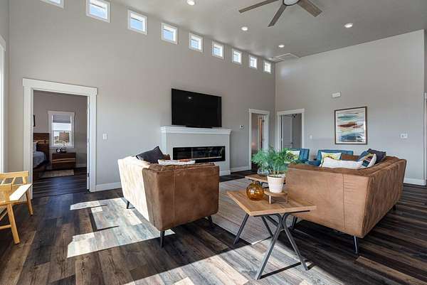 Tucked into the red rock landscape of Kanab, this fully furnished, nightly-rental-approved retreat delivers a rare two-home setup on 2.01 acres-perfect for investors, multi-generational living, or a private getaway that pays for itself. The main home offers 1,813 sq ft with an attached 2-car garage and a bright, open great room designed for gathering and entertaining. Vaulted ceilings, expansive windows, wide-plank flooring, and a clean, modern kitchen create a welcoming space that feels equal parts stylish and comfortable. The detached casita spans 1,232 sq ft including a 136 sq ft loft, offering a separate living experience ideal for guests or additional rental income. Thoughtful design continues throughout both homes with contemporary bathrooms, tiled showers and well-appointed bedroomseach space coming fully outfitted with furnishings and appliances, making this a true plug-and-play investment. Owners and guests enjoy access to an impressive lineup of resort-style amenities including a large outdoor pool, fire pit for evening gatherings, pickleball courts, and a swing set for kidsadding serious lifestyle and rental appeal. With proximity to Lake Powell, Zion National Park's East Entrance, numerous other parks and travel destinations, endless hiking and biking trails, plus Kanab's beloved dining and art scene, this location checks every box for adventure-seekers and vacationers alike. Whether you're building a short-term rental portfolio or looking for a flexible property that can host friends and family in style, this turnkey dual-home retreat offers income potential, privacy, and an unbeatable Southern Utah setting.