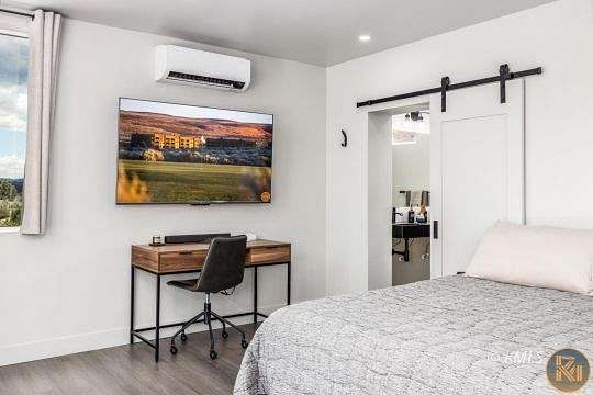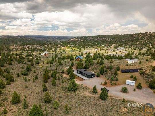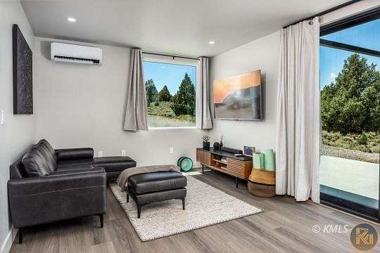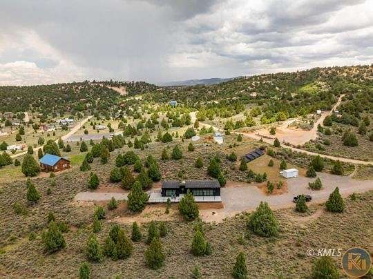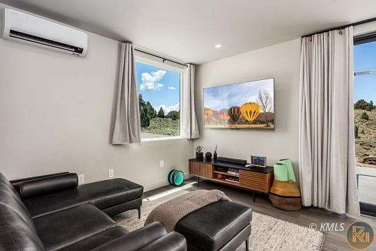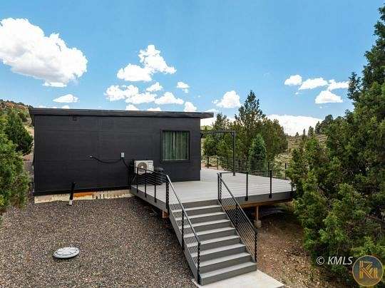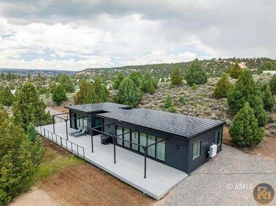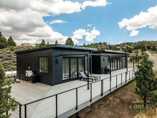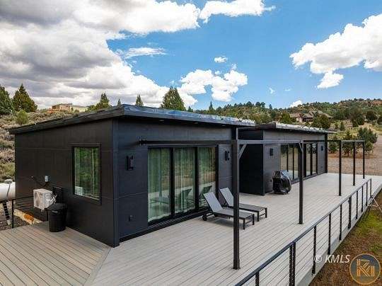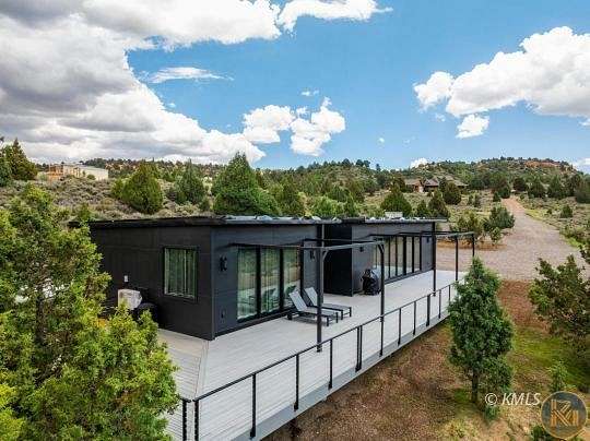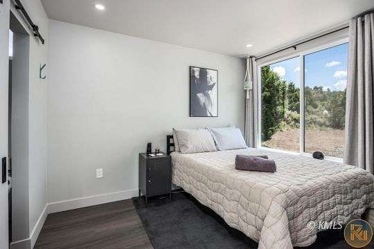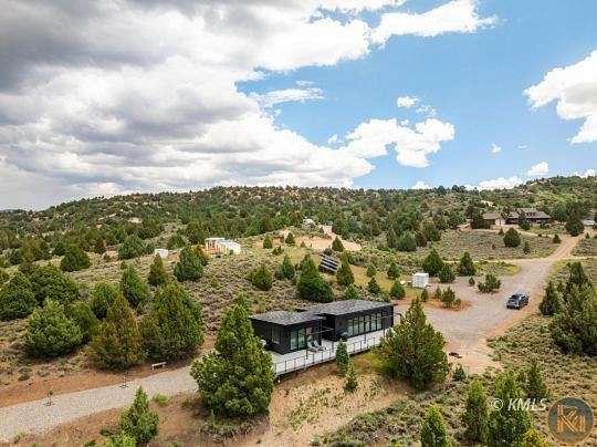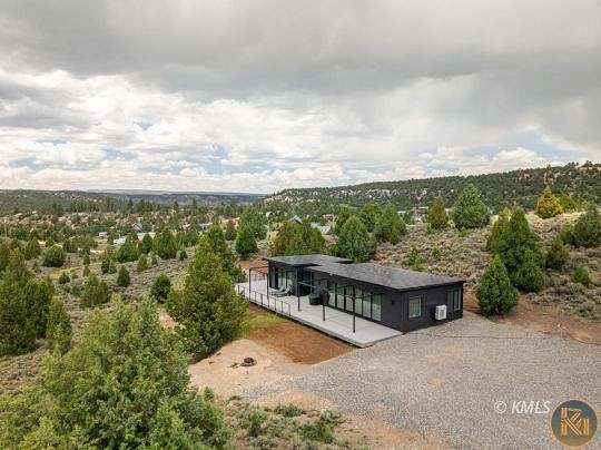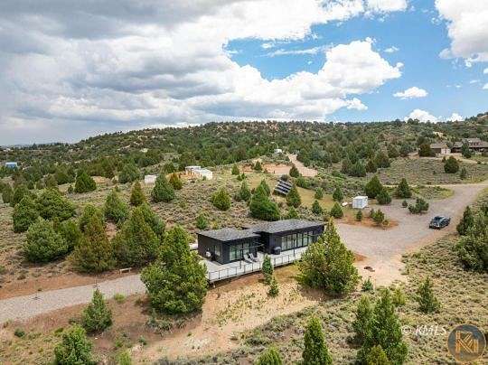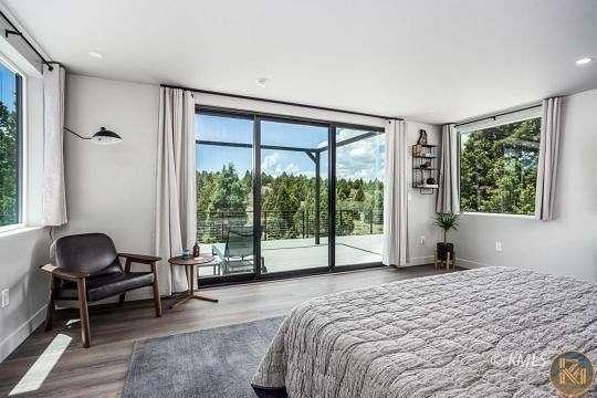 Discover the allure of this exceptional modern home, set on 2.35 acres of pristine land! From the moment you enter, you'll be captivated by the panoramic sliding patio door, seamlessly blending indoor and outdoor living spaces. This fully furnished, turn-key 3-bedroom, 3-bathroom luxury retreat has been meticulously crafted with no expense spared. With high-end, modern finishes throughout, it features a stunning waterfall quartz kitchen island, built-in cabinetry in each bedroom, sleek matte black accents, designer bathrooms with luxurious upgrades. Nestled on a private knoll amidst secluded acreage, this home offers unparalleled privacy. Expansive Timber Tech decking wraps around the front and sides with an outdoor gas fire-pit, providing an ideal setting to enjoy the serene surroundings. Mature, native trees enhance the natural beauty of the property. The home also boasts solar panels with a battery backup system, all easily controlled via your smartphone for maximum efficiency. Breathe in the fresh mountain air, surrounded by native landscaping and sweeping 360-degree views. Excellent Short Term Rental opportunity with more room to expand! Buyer to verify all.
