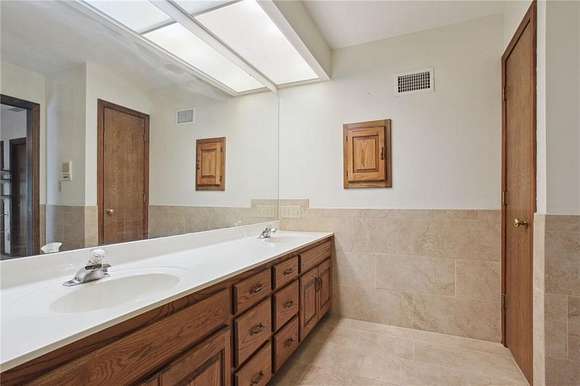 Master bedroom w/ 4 large closets & updated en suite w/ beautifully tiled shower & double vanity. 3 additional big bedrooms all with great size double closets, ceiling fans & private views of tall trees surrounding.
