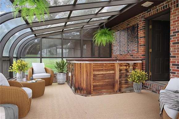 Enclosed porch off kitchen provides future options for greenhouse, outdoor dining or more (currently wired for a hot tub)!