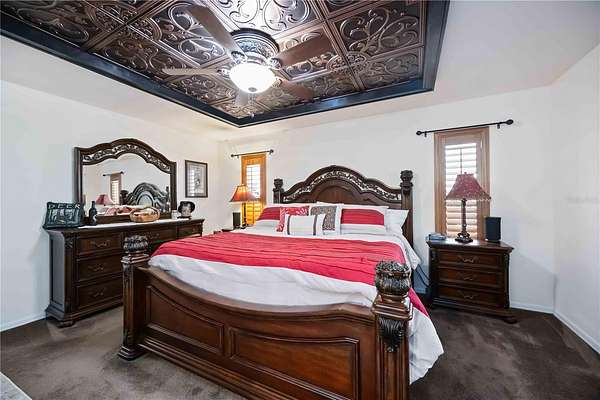 - Cathedral Ceiling(s), Ceiling Fans(s), Crown Molding, Eat-In Kitchen, Primary Bedroom Main Floor, Solid Surface Counters, Solid Wood Cabinets, Stone Counters, Walk-In Closet(s)