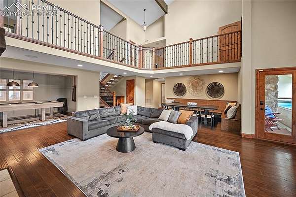 Discover the perfect blend of luxury, privacy, and investment potential with this exceptional 9.96 acre estate, tucked in the trees just minutes from the U.S. Air Force Academy and top Colorado Springs attractions. Spanning 6003 sq ft, this fully furnished retreat boasts almost a decade of strong rental history on VRBO. Whether you are seeking a turn-key income property, a part-time getaway, or full time wooded home this estate delivers on every front. Inside you'll find a gourmet kitchen with high-end appliances and expansive workspace, vaulted ceilings, open concept living, and stunning Pikes Peak Views. There is a private 44 ft indoor heated lap pool and outside hot tub which are a guest favorite and year round luxury. Multiple spacious bedrooms and gathering areas designed for comfort and entertainment make it the ideal location for multi-family use. Owner recently purchased the 4 acre adjacent lot and combined with the county to make a 9.96 acre ranch. Future owner can possibly subdivide and have 2 legal lots resulting in 2 income producing properties. Outside the property is zoned for horses. The "barn" (11,976 SF) has a 78' by 58' indoor riding arena, 8 stables with heat, 3-bedroom caretaker residence, tack rooms, office space, feed room, and bathroom. There is also nearly 2,000 SF of covered outdoor storage. The barn has not been used by the current owner but is ready to create new value for a buyer. Additional highlights include: secluded nearly 10 acre lot surrounded by towering pines, proven short-term rental performance with strong guest reviews that can be transfered, and convenience to hiking, biking, Garden of the Gods, and downtown Colorado Springs. Whether you're an investor seeking reliable returns or a buyer ready to live the Colorado dream, this estate is a rare opportunity. Income, beauty, and location-all in one! Please do not disturb guests by driving on property as this is an active VRBO.