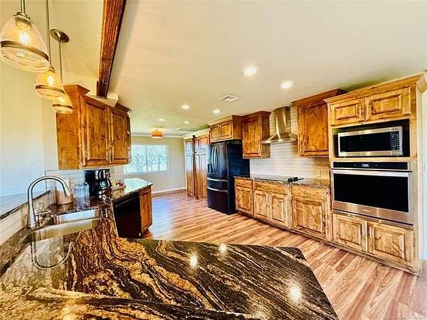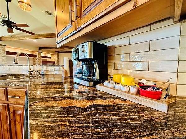 Calling all ranchers and livestock enthusiasts, here is your opportunity to own a beautiful 65 acre MOL parcel of Eastern Oklahoma! This breathtaking farm with two ponds and stunning, move-in ready home is convenient to both Lake Eufaula and Checotah. Step inside to a welcoming living room featuring a cozy electric fireplace rustic beam work and stunning panoramic views of the scenic acreage. Prepare yourself for the gorgeous kitchen with new granite countertops with generous surface space for cooking up those delicious meals. The home includes three spacious bedrooms and two well-appointed bathrooms, providing both comfort and functionality. The master suite is a true retreat, complete with generous his-and-hers walk-in closets. Designed for durability and efficiency, the home boasts a metal roof just 6 years old, along with a fully electric system complemented by propane backup for added peace of mind. The HVAC system was updated in 2021, ensuring year-round comfort. The property is equally impressive outdoors, featuring two versatile barns with electricity. One barn includes a concrete floor, three stalls, and dual access doors-ideal for livestock, equipment, or hobby use. A unique and practical feature of this home is the dual septic system-one dedicated to the bathrooms and another servicing the kitchen and laundry areas. With its blend of rustic charm, thoughtful upgrades, and wide-open space, this exceptional farm offers a rare opportunity to own a slice of the Heart Land that you won't want to miss. 12 minutes from Checotah, 19 minutes from Eufaula, 1.5 hrs from OKC, 1.25 hrs from Tulsa, 3.4 hrs from Dallas. Call to schedule your showing today!