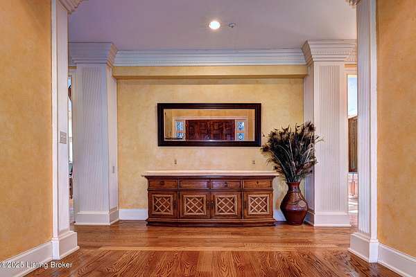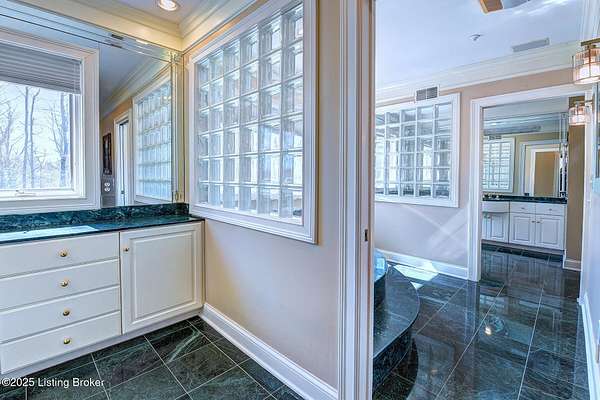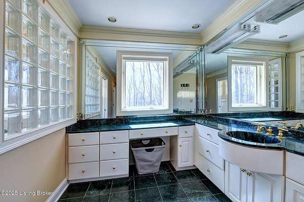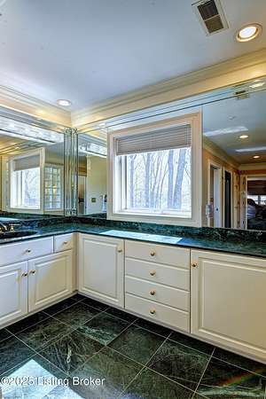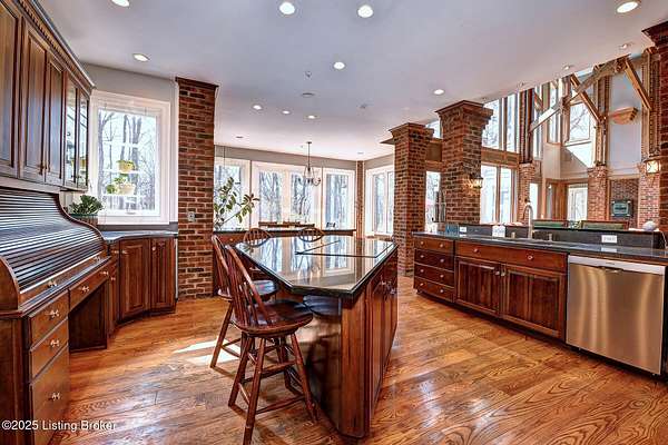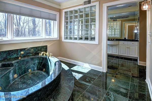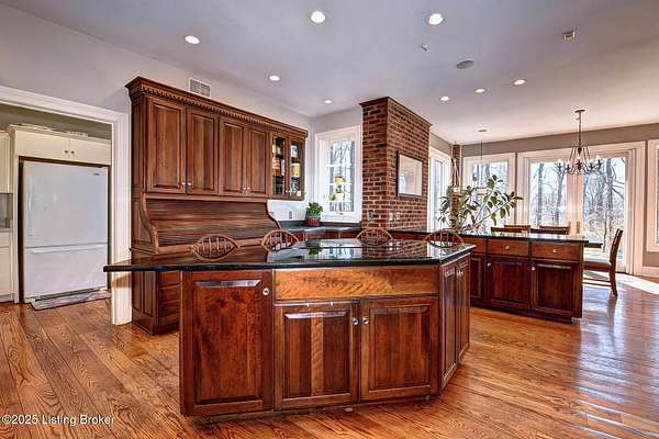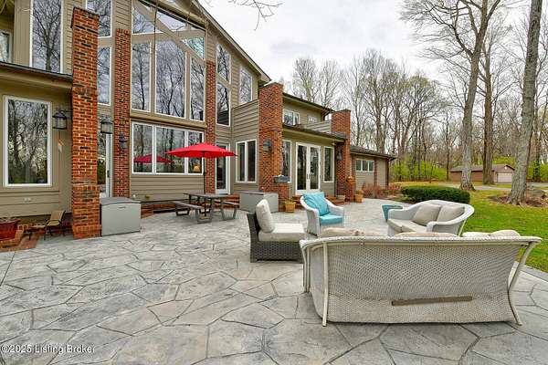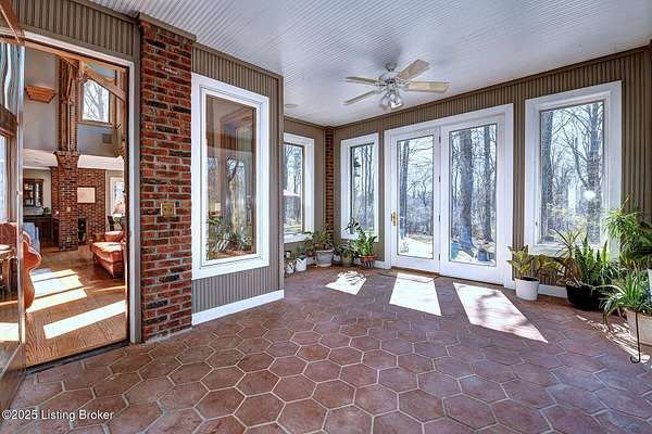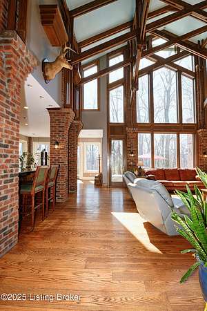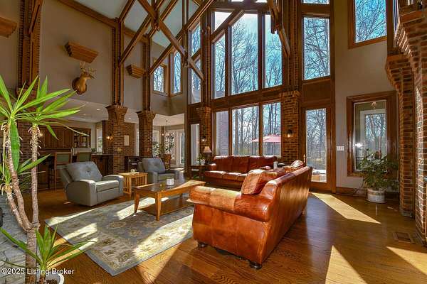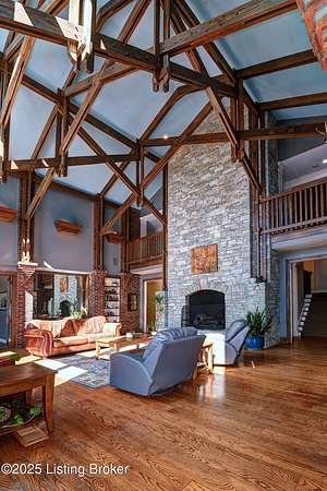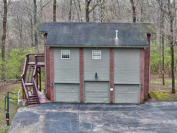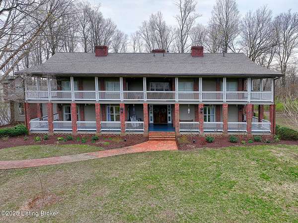 This Jefferson County estate is a treasured blend of seclusion and convenience offering 5 BR, with potential for 7 BR, 7 Bathrooms and 7 garage bays, this remarkable property also offers a separate 1 BR apartment and 7 garage bays and is perfectly situated on 5 secluded acres, just minutes from all amenities. A truly rare opportunity to own an extraordinary private estate that seamlessly blends timeless elegance with rustic charm. A winding, tree-lined drive teeming with wildlife and blossoming nature views from every angle lead you to this custom-designed architectural masterpiece by renowned architect Rick Feeney. You will be captivated by the grandeur of the Southern plantation feel blended seemlessly with the warmth of a private hunting lodge. This exquisite home was crafted with the finest materials including solid wood flooring, copper gutters and a perfect blend of brick and wood siding. The double wrap around porches that are accessible from every living space add a southern flare unmatched by anything in the area. Inside, the 2-story entry foyer welcomes you to the charm and class from which this home originates. The breathtaking Great Room featuring exposed wood beams, a dramatic floor-to-ceiling fireplace, a wet bar and drop-down mechanized shades connects to the 3 Season Sun Porch and the newly completed expansive patio with stamped concrete, perfectly accentuating the original design of the home. A full-house surround system, with individual controls inside and out, enhances the ambiance throughout. The main level also offers a spacious eat-in kitchen updated with new appliances including an induction stovetop and a dual sous-vide and air fryer-capable oven. Granite and Quartz countertops accentuate the rustic, solid wood, custom built cabinets. Don't miss the Butler's Pantry or Catering Room with extra refrigerator, lots of cabinets and prep area, along with laundry hook ups for an additional 1st floor laundry space. You will also find an elegant Dining Room or Billiard Room with fireplace for ease of entertaining. Down the hall, an open concept Den or Office also equipped with functioning fireplace and rustic wooden built-ins and accents properly adorn this coveted living space. There is also a 1st floor Primary Bedroom on this floor with new flooring, a walk-in closet, full ensuite bathroom and direct access to the Sun Room. Upstairs on the Second Floor, the luxurious Primary Suite with fireplace provides so much flexibility in space and accommodations. An attached bonus room which could be used as a nursery or office, is private to the primary suite and has its own gorgeous views of the property. A spa-like bathroom with dual sinks, multiple closet options, shower and jacuzzi tub offer customized separate vanity and prep areas with walk-in closet and eye-catching skylight. There are 2 additional bedrooms, one with fireplace and one with an ensuite bath, making 3 Bedrooms and 3 Full baths on this floor. Convenient 2nd floor laundry is loaded with storage and room for organizing. Third floor area consists of a newly added Fun Room/Play Room with lots of room for toys, playing or enjoying an additional relaxing media area. It currently holds a full ball pit and plenty of additional toy storage/relaxation areas with its own breath-taking views from above. Third floor bedroom suite is a charming retreat with office nook, built-in custom daybed, ensuite full bath with glass shower door, private nature views and a very spacious walk-in closet with multiple built-in storage areas and hanging space. A favorite spot for many. The lower level is the entertainers dream, featuring newly installed flooring, family room, kitchen with bar seating, eat-in area for table and chairs and a wired surround-sound theater room, a game room or office with 2 walls of custom built-in shelving, a safe room/meditation or prayer room, a full in home Gym with rubber flooring and mirrored walls and a full bathroom. There is private access to