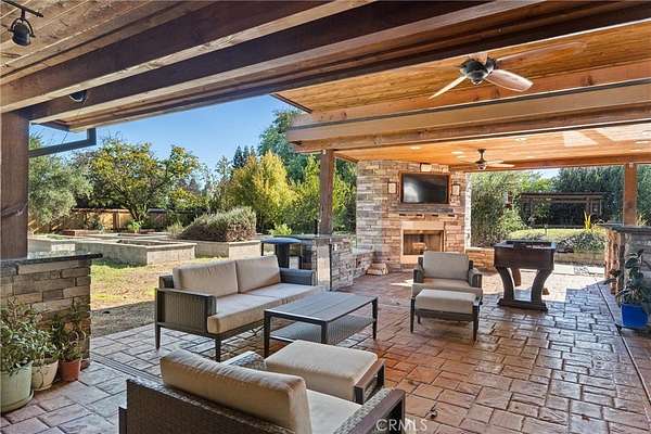 Every day feels like a getaway in this stunning custom home. A rare blend of luxury, comfort, and entertainment all in one. With 4 spacious bedrooms, 3.5 bathrooms, and over 3,100 sq. ft. of beautifully designed living space, this property is truly one of a kind. Step inside to a grand, open kitchen featuring upgraded countertops, newer stainless-steel appliances, and abundant custom cabinetry. The oversized island flows seamlessly into the living area, perfect for family gatherings or hosting friends. The living room impresses with its cozy pellet stove and a fully equipped custom bar, complete with granite countertops, custom lighting, a full-size refrigerator, a wine fridge, a sink, and six taps. An entertainer’s dream! Each bedroom offers generous space and comfort, while the primary suite feels like a five-star retreat. Enjoy a walk-in closet, dual vanities, a private wet bar with a wine fridge, an oversized walk-in shower with multiple showerheads (including a rainfall showerhead), and a two-person jetted tub, ideal for unwinding at the end of the day. Step outside and discover an outdoor oasis designed for year-round enjoyment. The tri-level patio boasts a complete outdoor kitchen, multiple seating areas, a large bar, ceiling fans, a mounted TV, a built-in sink, BBQs, a smoker, and ample under-counter storage. At the center is a resort-style swimming pond with a beach entry, natural granite slabs, and a stunning waterfall feature, surrounded by mature landscaping and fruit trees that create your own private paradise. Additional features include a 30' x 40' powered shop with lighting, built-in air lines, and plenty of space for projects or hobbies. The backyard also offers an amphitheater-style lawn with a full outdoor theater system, complete with a high-definition projector and surround sound, perfect for movie nights under the stars. For those who love sustainable living, the property includes raised garden beds, a large chicken coop, and an impressive collection of fruit trees—peach, apricot, cherry, plum, pluot, orange, grapefruit, lemon, lime, fig, and pomegranate. Located just outside Chico city limits on 1.5 private acres, this home includes its own well, leased propane tank, and a semi-owned solar system. Welcome home to your very own private resort!