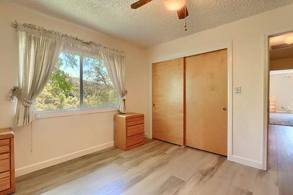Motivated sellers, Back On Market due to buyer circumstances. Price just reduced, on this terrific horseable property in Oakhurst, California in a perfect location: close to town, Bass Lake, and Yosemite National Park, a 4 bedroom, 2 bath home with an oversized garage on 3.3 acres, with lovely views of Deadwood Mountain. Opportunity for a primary residence, short term vacation rental, or vacation home. All fenced and gated for privacy, set up for horses if buyer desires, with corral area approximately a half acre, plus over 2 acres fenced meadow, shade trees, and water; perfect for horses or simply for privacy. There's an 18' x 24' metal workshop, with upgraded material, snowload roof, electricity, & rollup door. The home has an updated kitchen with a built-in range & hood, new Amana dishwasher, new electric oven, and Whirlpool refrigerator. Brand new flooring throughout is scratch resistant and waterproof; new interior paint is refreshing and clean; a nearly new swamp cooler provides relief from summer heat. Two patios and a deck provide outdoor living space, with views and summer breezes; and there are three detached carports: 18' x 22' and 12' x 18' and 12' x 12'; plus a 16' x 10' shed and an 8' x 10' shed. With a little outdoor TLC you can make this property your own! Call your favorite REALTOR today to arrange a showing!