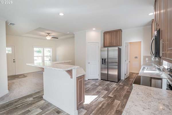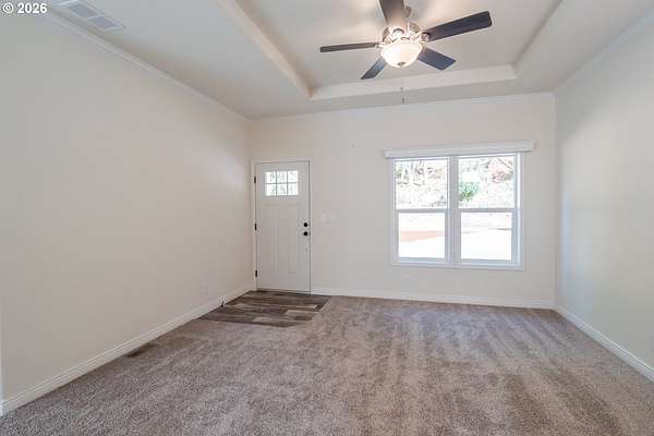 Privacy, peaceful views, and the soothing sounds of Winberry Creek surround this brand-new 3 bedroom, 2 bath home on over 3 serene acres. With improved pricing and spring just around the corner, now is an ideal time to secure this rural retreat before seasonal competition increases.This 2025 new-construction home offers a thoughtfully designed, functional floor plan with beautiful built-ins and cabinetry throughout. The well-appointed kitchen features brand-new stainless steel Frigidaire appliances, a center island, pantry, and generous workspace, with a conveniently located laundry room just off the kitchen.Step outside to the back patio and enjoy expansive views of surrounding hills and trees; perfect for morning coffee or quiet evenings immersed in nature. The property offers ample space for an RV, boat, and recreational parking, with room to explore future possibilities such as an outbuilding or potential ADU (buyer to verify with county).Located just minutes from Fall Creek Reservoir and Willamette National Forest recreation, this peaceful setting offers close access to hiking and nature with the added convenience of nearby Lowell amenities. A rare opportunity to enjoy new construction, privacy, and strong value as the spring market approaches.