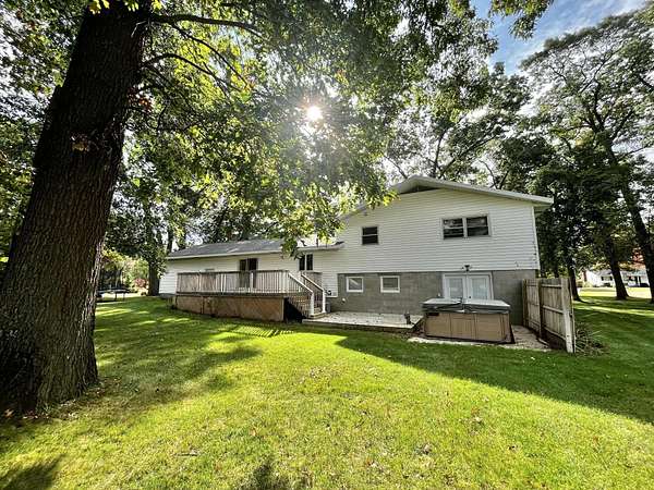 Beautifully Updated and Spacious Home Near Oakridge Schools! This inviting 4-bedroom, 2.5-bath home offers plenty of space for comfortable living and entertaining. The kitchen features ceramic tile floors, hickory cabinets, a pantry, and abundant storage. The dining area includes a slider leading to the back deck, and the living room provides ample room for gatherings. Fresh flooring enhances the main level dining and living areas. Upstairs, you'll find three bedrooms and two full baths, including a beautifully remodeled primary bath with a new tub and elegant ceramic tile surround. The lower level offers a large family room, additional bedroom, laundry area, and half bath-with a walkout to the relaxing hot tub. The basement includes a spacious rec room with pool table and bar area, plus a utility and storage room. Convenient stair access to the basement from the garage or from inside. Additional features include a whole-house generator, new roof and well in 2017 two-stall attached garage, garden area with sprinklers, and a hot tub. The playset, pool table, hot tub, and one portable garage are included.