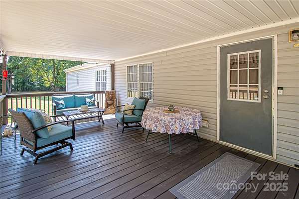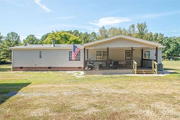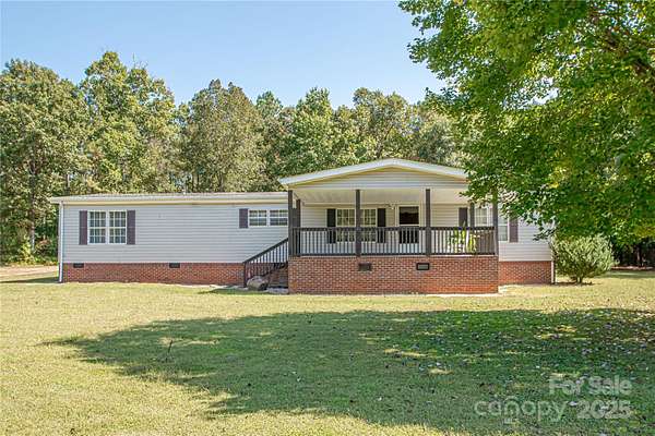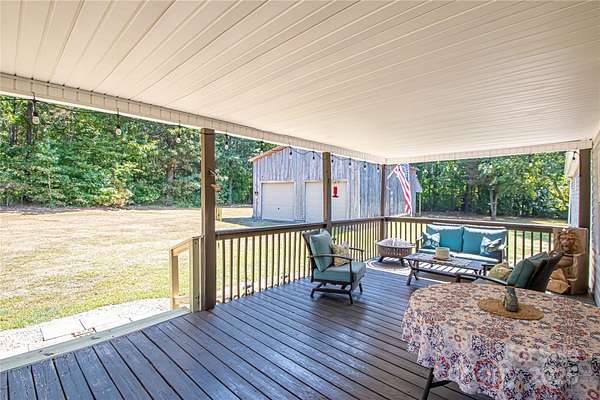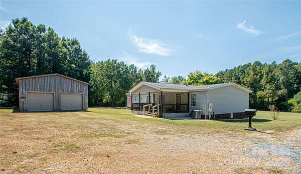 Welcome to your peaceful retreat on two serene acres in western Anson County! This acreage is level and open, but the property is surrounded by mature hardwoods giving it an open yet secluded feel! The outdoor spaces here maximize the opportunity to take in this beautiful setting - a spacious covered front porch to look out over your land or the cozy, covered back deck also provides a space to unwind and enjoy nature! Inside, the open floorplan and split bedroom layout provide both privacy and flow, making the space feel expansive and welcoming. You'll love the large walk-in closets and a kitchen loaded with cabinet space-perfect for storage and entertaining! And for hobbyists or car enthusiasts, the massive outbuilding is a dream come true: solid construction, high ceilings, and a concrete floor-with room for up to six vehicles!