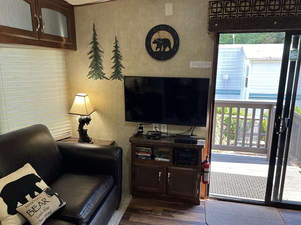 Beautiful RV lot with grassy side yard, extended brick patio, ornamental landscaping, and large parking space all surrounded by mature trees. Lot is located in the wonderful Outdoor Resorts RV park that is nestled in the Great Smoky Mountains. Included with the lot is the meticulously maintained 2015 Forest River Salem Villa Classic 39FDEN destination camper. Camper is beautifully decorated with beloved Smoky Mtn bear decor and is already completely setup for personal use or for renting, if you choose. Camper has 2 sleeper sofas, TVs in living area and bedroom, electric fireplace, kitchen table for 4, stove/oven, microwave, residential refrigerator, washer/dryer, residential toilet, mini-split system, and supplemental electric heater. Camper/Lot is being sold turnkey which includes patio furniture, grill, fire pit, custom built steps, bear decor, dishes, appliances, linens and much more. Everything except items in underbed storage and security cameras. This makes a perfect Smoky Mountain vacation spot, permanent residence of your very own, or a short term rental. Outdoor Resorts is a beautiful luxury vacation resort campground with deeded lots that is snuggled in the Smoky Mountains and is open ALL year round. Lot owners own their individual lot and a portion of the common areas. The park is maintained by the Home Owners Association. Fees include water, sewer, cable, internet and garbage pickup. Electric is provided by Sevier County Electric and is billed directly to the lot owner. Bottle gas is on site if needed for an additional charge. There are ample amenities including 2 swimming pools, 2 mountain streams, a catch and release fishing lake, basketball courts, mini golf, horseshoe pits, shuffle board court, playground, game room, activities center, camp store/cafe, and a recreation hall with library and coffee bar. Condo fees are billed quarterly at $700.00 Outdoor Resorts is a PUD Condominium. Information is deemed reliable, Buyer to satisfy themselves as to accuracy