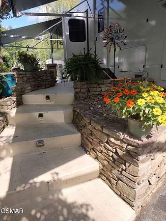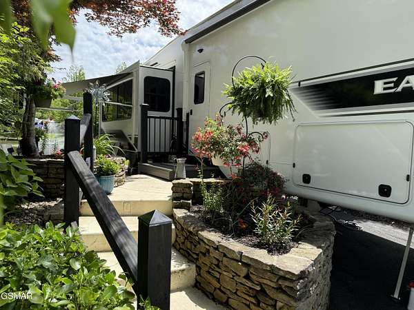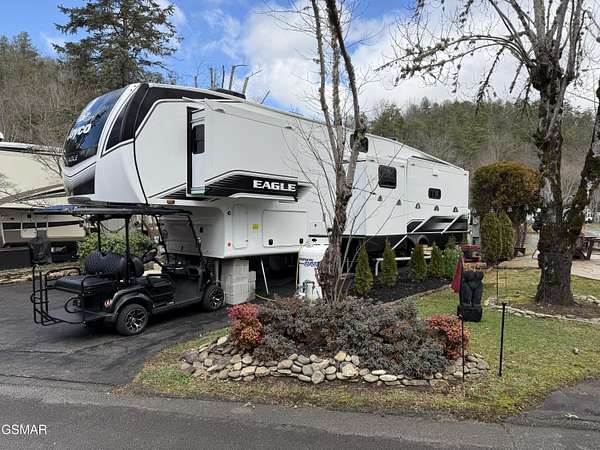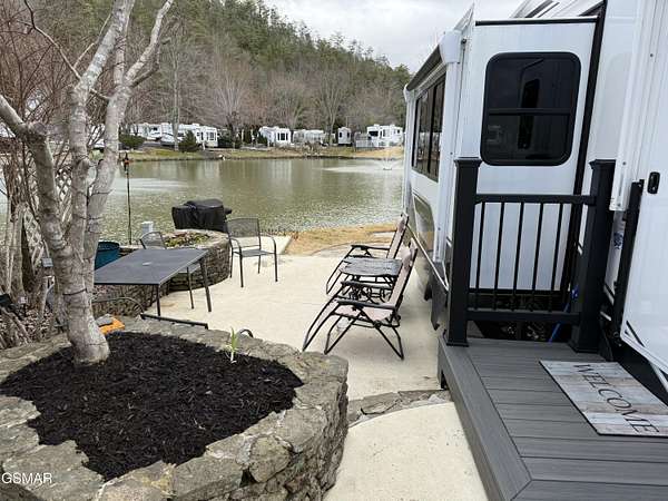 NOTE: Lot ONLY available for $135,000 or Lot with camper at $199,900! Beautifully landscaped LAKEFRONT RV lot in the sought after Outdoor Resorts at Gatlinburg RV resort. Lot boasts a variety of trees for both shade and beauty. Lot has a unique built in stacked stone platform with steps on both sides and planter/landscaping areas. There is also a back patio that sits perfectly on the lakefront so you can enjoy the views of the lake, the sounds of the lake's small waterfall feature, along with the lighted water fountains while you enjoy a cookout with friends and family! In addition, you can fish right from your own property in the catch & release lake. Optionally included with the lot is an immaculate 2024 Jayco Eagle 355MBQS. Camper has a beautiful 2 tone modern design. Living room includes sleeper sofa, 2 recliners, big screen TV, fireplace, and lake views in every window. Kitchen includes residential refrigerator, stove/oven, coffee bar, dinette, island with double sink, pantry, and ample cupboard. Camper also has a master bedroom, a 2nd bedroom/office, a loft, and a bathroom. This is true deeded Real Estate that you can use year round! Outdoor Resorts is a luxury vacation resort campground with deeded lots. Lot owners own their individual lot and a portion of the common areas. The park is maintained by the Home Owners Association. Fees include water, sewer, cable, internet and garbage pickup. Electric is provided by Sevier County Electric and is billed directly to the lot owner. Bottle gas is on site if needed for an additional charge. There are 2 swimming pools, 2 mountain streams, a lake, basketball courts, mini golf, horseshoe pits, shuffle board court, game room, activities center and snack shop. Condo fees are billed quarterly at $700.00 Outdoor Resorts is a PUD Condominium. Information is deemed reliable, Buyer to satisfy themselves as to accuracy.