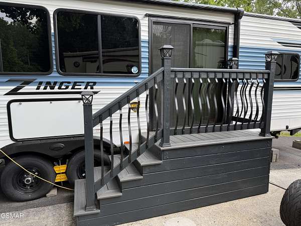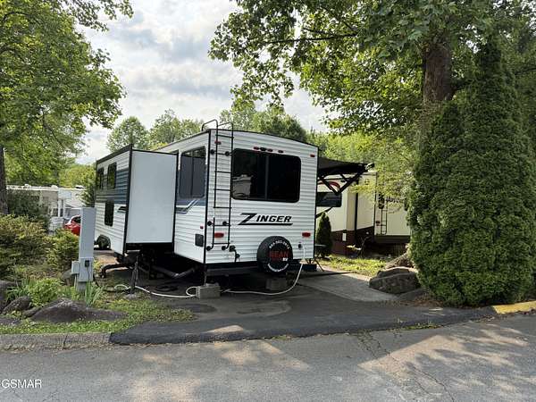 Beautifully landscaped pull-through corner RV lot in the sought after Outdoor Resorts at Gatlinburg RV resort. Lot has mature shade trees, seasonal flowers, privacy trees, a fireplace, and a nice patio area for gathering with family and friends to make memories in the beautiful smoky mountains. One of the just a few pull-through sites in the resort, where you can easily come and go with your camper if you choose. Included with the lot is a 2024 Crossroads Zinger 309BH. This gorgeously decorated and uniquely designed camper has a master bedroom and a bunk room perfect for families. Eat in kitchen has stove/oven, refrigerator, microwave, double sink, and bar seating. Open living area has a u-shaped couch, fireplace and big screen TV. Camper also has beautiful hardwood-like flooring and an outdoor kitchen. Golf cart included! This is true deeded Real Estate that you can use year round! Outdoor Resorts is a luxury vacation resort campground with deeded lots. Lot owners own their individual lot and a portion of the common areas. The park is maintained by the Home Owners Association. Fees include water, sewer, cable, internet and garbage pickup. Electric is provided by Sevier County Electric and is billed directly to the lot owner. Bottle gas is on site if needed for an additional charge. There are 2 swimming pools, 2 mountain streams, a lake, basketball courts, mini golf, horseshoe pits, shuffle board court, game room, activities center and snack shop. Condo fees are billed quarterly at $700.00 Outdoor Resorts is a PUD Condominium. Information is deemed reliable, Buyer to satisfy themselves as to accuracy.
