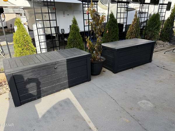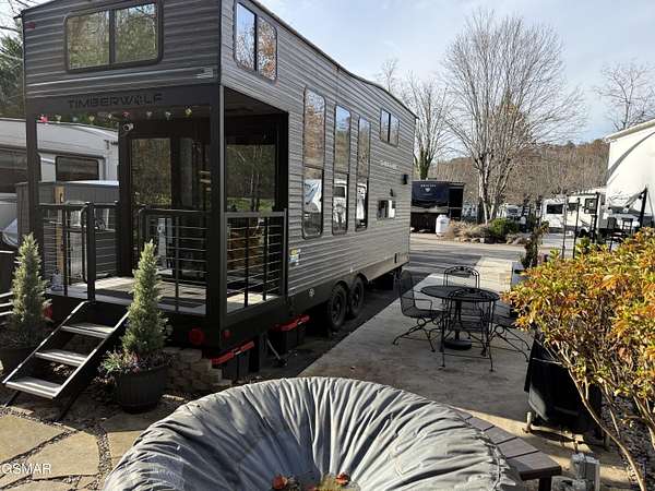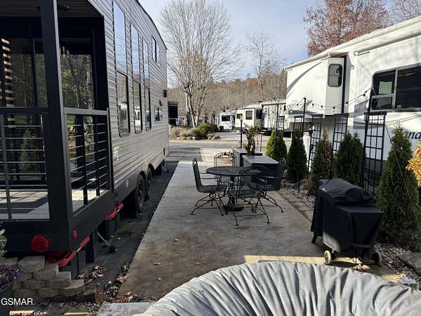 Nice RV lot surrounded by beautiful shade trees giving you the real sense of being in nature. Lot is backed up to a large common area giving you a back yard feel and a place to walk your dogs or set up your yard games. Lot has recently been upgraded with a stone patio, pavers, landscaping, bear decor, hot tub, exterior lighting, nice spacious shed, wrought iron table with chairs and umbrella, propane fire pit, outdoor chairs, and a picnic table. Lot also has space for parking 2 cars which is a big plus. Included with the lot is a super cute and ready to move in 2025 Forest River Timberwolf 16ML camper. Camper is adorably decorated and fully equipped with all the conveniences of home. You must come see it to appreciate all it has to offer. Highlights are a Nectar queen mattress, tankless water heater, fireplace with added heater, big screen TV, dishwasher, washer/dryer combo unit, double sided refrigerator, oven/stove, microwave, added shelves in closets, fully stocked kitchen with dishes, silverware, cooking utensils, pots/pans, and towels. Another great highlight is the camper's back porch overlooking the common area. Also included are tools, power washer, leaf blower, spa chemicals, and ladder. This is a place where you can come and make lifelong memories with your family and friends. This property can be used as a short term rental, a vacation home, or permanent residence of your very own nestled in the amazing Smoky Mountains. Outdoor Resorts is a beautiful luxury vacation resort campground with deeded lots that is snuggled in the Smoky Mountains and is open ALL year round. Lot owners own their individual lot and a portion of the common areas. The park is maintained by the Home Owners Association. Fees include water, sewer, cable, internet and garbage pickup. Electric is provided by Sevier County Electric and is billed directly to the lot owner. Bottle gas is on site if needed for an additional charge. There are ample amenities including 2 swimming pools, 2 mountain streams, a catch and release fishing lake, basketball courts, mini golf, horseshoe pits, shuffle board court, playground, game room, activities center, camp store/cafe, and a recreation hall with library and coffee bar. Condo fees are billed quarterly at $700.00 Outdoor Resorts is a PUD Condominium. Information is deemed reliable, Buyer to satisfy themselves as to accuracy.