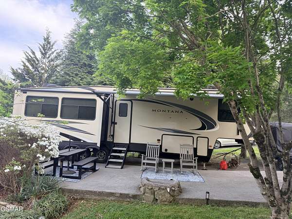 NOTE: Lot ONLY available for $85,000 or Lot with camper at $119,900! Beautifully landscaped lot with 2019 Montana High Country HM331RL 5th wheel camper located just a short walk to the main pool and the common amenities. The lot has a patio with fireplace and a nice green space perfect for gathering with family and friends. In addition, the lot is level, surrounded with trees and bushes, and has a long parking area. Beside the lot is a walking path to one of the resort's bathhouses for when additional facilities are needed. Included with the lot is a beautiful and very well kept one owner 2019 Montana High Country 5th wheel model HM331RL with a 4 season package. Outside, the camper has 3 slides with slide toppers, power awning, and lots of basement storage space. Inside it has a rear living room with electric fireplace, a large flatscreen tv, double recliner and a queen sleeper sofa. Kitchen has solid surface countertops, stainless steel appliances including residential refrigerator, stove/oven, and microwave, a nice pantry, coffee bar, lots of storage, and a 4 person dining area. Step up into the king bedroom with upgraded residential mattress, a large front closet, and a washer/dryer combo unit. Bathroom has a spacious shower and double sinks. Camper has 2 AC units and a heat pump in addition to the propane furnace enabling you to have a comfortable climate regardless of the weather. Camper also has tank heaters, 2 grey tanks, and vinyl flooring throughout all the main traffic areas. Camper has been detailed yearly and just had roof maintenance last year. This is a MUST SEE unit with a very reasonable price. It is a place where you can make wonderful memories with your family and friends. This property can be used as a short term rental, a vacation home, or permanent residence of your very own nestled in the amazing Smoky Mountains.This is true deeded Real Estate that you can use year round! Outdoor Resorts is a luxury vacation resort campground with deeded lots. Lot owners own their individual lot and a portion of the common areas. The park is maintained by the Home Owners Association. Fees include water, sewer, cable, internet, trash pickup, grass cutting, and use/maintenance of all the common amenities. Electric is provided by Sevier County Electric and is billed directly to the lot owner. Bottle gas is on site if needed for an additional charge. There are ample amenities including 2 swimming pools, 2 mountain streams, a lake, basketball courts, mini golf, horseshoe pits, shuffle board court, game room, activities center, camp store/cafe, and a recreation hall with library and coffee bar. HOA fees are billed quarterly at $700.00 Outdoor Resorts is a PUD Condominium. Information is deemed reliable, Buyer to satisfy themselves as to accuracy.