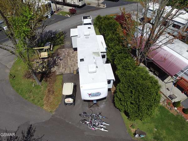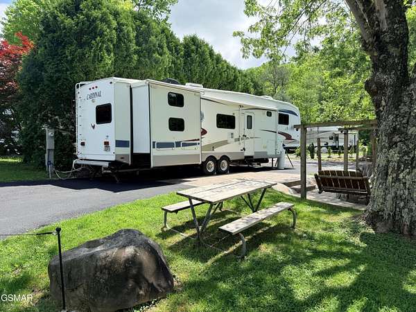 Pull-through corner RV lot with shade trees and a beautiful firepit area with 2 double swings where you can peacefully swing while enjoying your morning coffee, a good book, or just the surrounding nature, along with your campfire. Lot has just been resurfaced and has a large green space for gathering with family and friends. Lot pad has ample parking at the back of the camper and room for golf cart/toys at the front. Included is a VERY well kept and maintained 2 bedroom and 1.5 bath 2007 Cardinal 362BHLE fifth wheel camper. Main living space is an open plan with a new 5 seat all reclining sectional couch, refrigerator, stove/oven, new microwave, new toaster oven, double sink, large countertop with a flip-up addition that can be used as extra prep space or even as a desk, and ample cabinets all around. Master bedroom has a king bed, large closet, and built-in dresser. Bunk room has a custom built double lower bunk with trundle, a single upper bunk, and a 1/2 bath. Camper is equipped with 3 smart TVs, residential washer/dryer, new awning, new slide toppers with enclosed sides for extra insulation and protection, an upgraded 15 gal hot water heater, 2 ACs with the main one capable of setting with a phone app, upgraded LED lighting throughout, and a new battery. In addition, the roof has just been resealed. This would make a wonderful Smoky Mountain vacation spot or short term rental property of your very own. This is true deeded Real Estate that you can use year round! Outdoor Resorts is a luxury vacation resort campground with deeded lots. Lot owners own their individual lot and a portion of the common areas. The park is maintained by the Home Owners Association. Fees include water, sewer, cable, internet, trash pickup, grass cutting, and use/maintenance of all the common amenities. Electric is provided by Sevier County Electric and is billed directly to the lot owner. Bottle gas is on site if needed for an additional charge. There are 2 swimming pools, 2 mountain streams, a lake, basketball courts, mini golf, horseshoe pits, shuffle board court, game room, activities center, camp store/cafe, and a recreation hall with library and coffee bar. HOA fees are billed quarterly at $700.00 Outdoor Resorts is a PUD Condominium. Information is deemed reliable, Buyer to satisfy themselves as to accuracy.