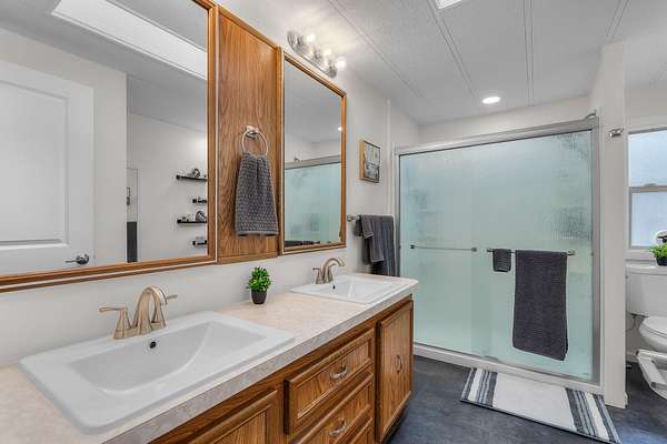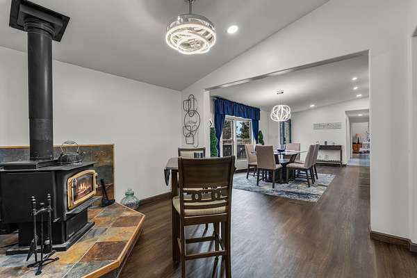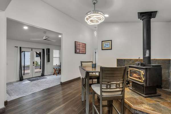 Fully remodeled in 2023, this 1,908 sq ft home delivers refined luxury with effortless Central Oregon living-featuring locally crafted Ochoco Cabinets, local granite countertops, a stunning glass backsplash with hidden glow effects, sensor kitchen faucet, and an extended kitchen bar designed for connection. The chef-inspired kitchen offers a Frigidaire Pro 17 cu ft side-by-side refrigerator/freezer, 5-burner Jenn-Air induction cooktop, Jenn-Air oven, KitchenAid convection microwave/dishwasher, and a thoughtfully curated coffee bar-perfect for grabbing your morning cup before cruising Starlink while relaxing beside the cozy woodstove sitting area. Elevated finishes continue with vinyl flooring, new carpet and tile, all new interior and front doors, Bluetooth bathroom fans, large mud room with newer washer/dryer included. Additionally, new sheetrock with rounded wall corners completed throughout, blown-in ceiling insulation - partial home replacement, a new electrical panel and breaker.
