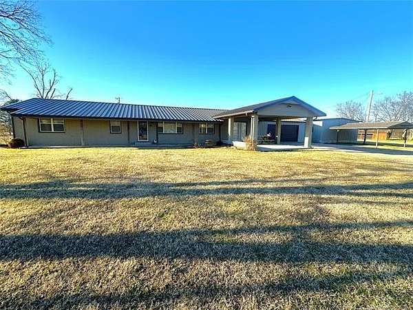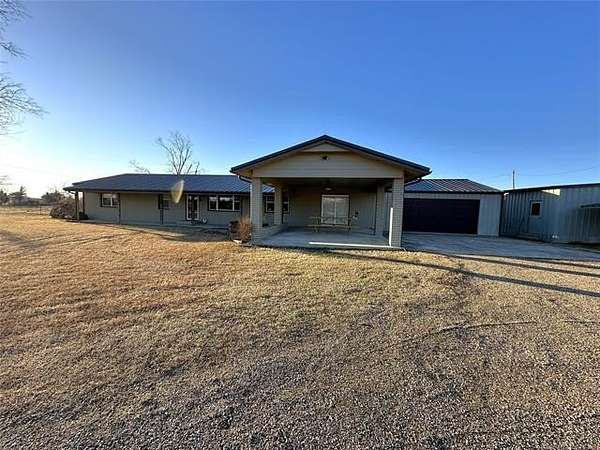 From Checotah, Take Busisness 69 South to 1080 RD and turn East, Travel approx. 2 miles, home on North side of road. GPS: 35.450284,-95.488788