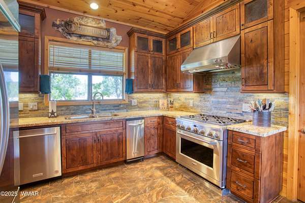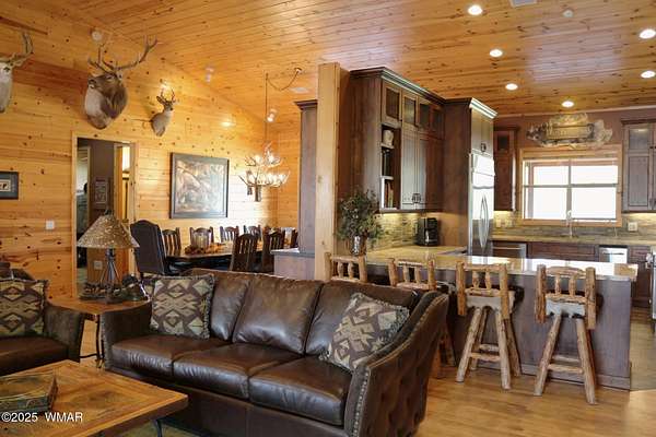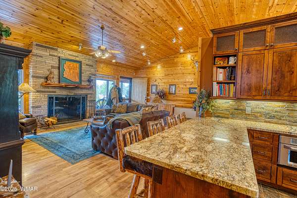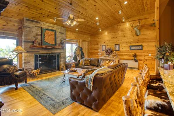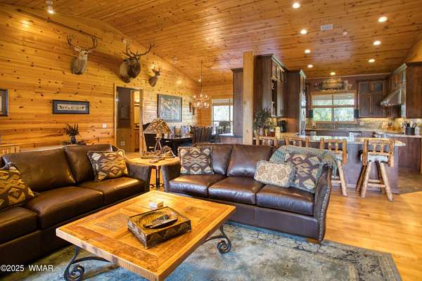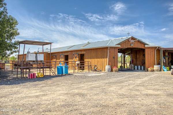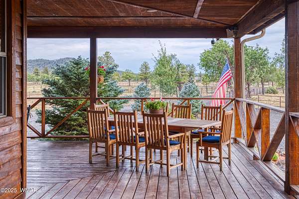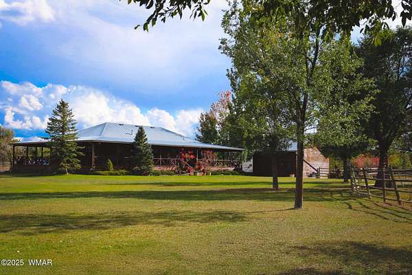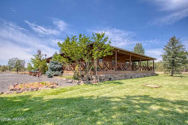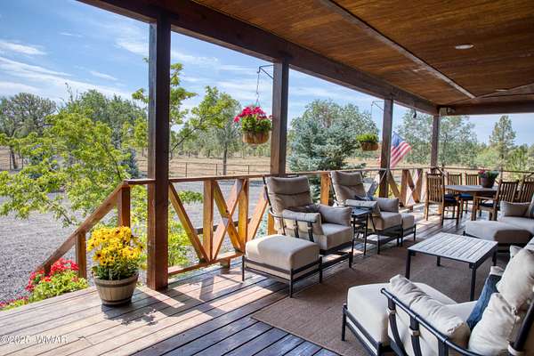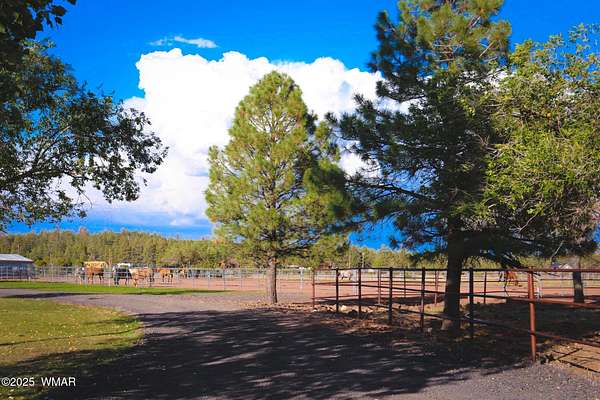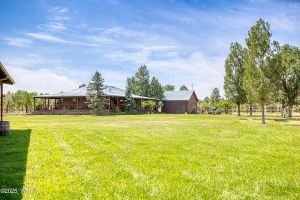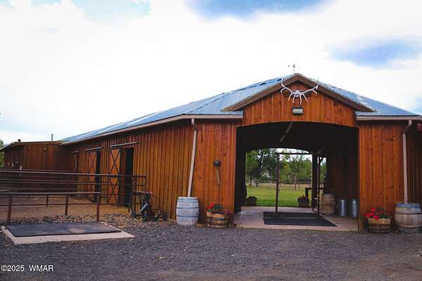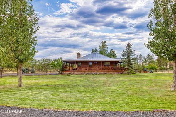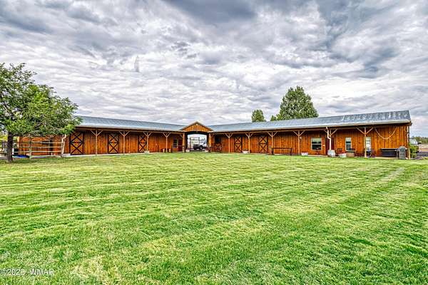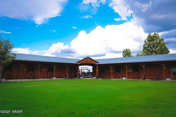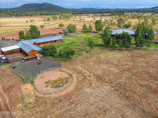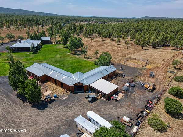 MOUNTAIN MAJESTY MEETS EQUESTRIAN LUXURY RANCH! Nestled amid tall pines and open pastures, just ten minutes from Show Low and Pinetop, this custom home and Equestrian ranch places you in Arizona's White Mountains. The residence features expansive wraparound decks with panoramic views of pastures, horses, stables, and landscaping. This 4 bedroom, 3 home is designed for entertaining, with an open floor plan, tongue and groove wood, and custom woodwork. The chef's kitchen has granite countertops and stainless steel appliances. 3 domestic wells ensure a reliable water supply, with eco-friendly solar backup. The equine barn offers 6 stalls with turnout paddocks, a tack room, and a breezeway. There is a 100x200 arena and round pen. Connected to the barn is a 1,107 to the barn is a 1,107-square -foot apartment with two bedrooms, two bathrooms, and a living area. The property also features a massive garage and workshop. Enjoy year-round outdoor recreation and easy access to local shops and restaurants. The entire property has beautiful pipe fencing...impressive in all aspects so Don't miss this opportunity to own a ranch in Arizona's White Mountains. Watch the video:
