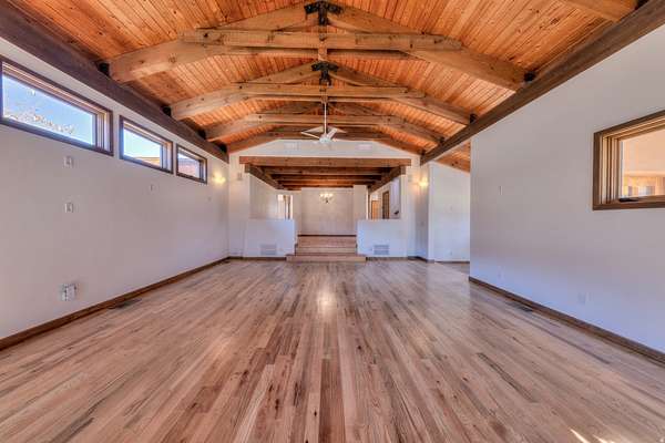 Exceptional artist-designed estate on over 5 acres in Castle Valley offering privacy, craftsmanship, and breathtaking red rock desert views, including Castleton Tower, Round Mountain and the La Sal's. This unique two-story home was built by art collectors and features gallery lighting in the living room, hand-carved teakwood fireplace mantle and window panels, and adobe fireplace walls crafted by a New Mexico artisan. The home showcases Andersen wood windows, hand-carved wood entry door and outdoor columns, resurfaced oak flooring, and authentic Saltillo tile. The kitchen and primary bath feature granite countertops, while the guest bath includes quartz. A second-floor bedroom/artist studio offers dramatic 360 view windows overlooking the surrounding red rock landscape. A bright sunroom/office opens to a newly refinished wraparound deck with outdoor shower and exterior lighting. The property also includes a large fenced garden with raised beds and numerous mature shade trees. Additional highlights include a durable metal roof, and an impressive 4,500 sq ft climate-controlled garage/workshop with two RV bays, four automobile bays, and multiple workbench areas. This versatile structure offers exceptional storage and functionality year-round -ideal for collectors, hobbyists, or creative workspaces. A rare opportunity to own a distinctive desert retreat blending art, architecture, and Castle Valley's iconic scenery. Square footage figures are provided as a courtesy estimate only and were obtained from Grand County UT and seller. Buyer is advised to obtain an independent measurement.