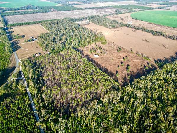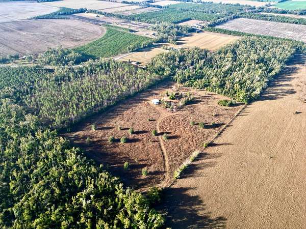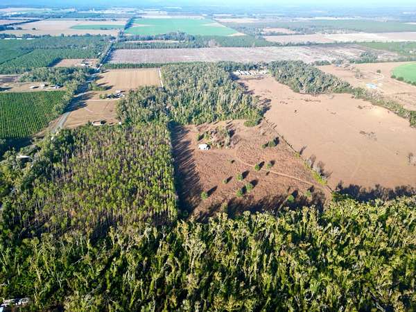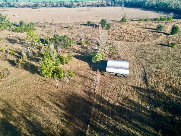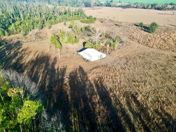 This 54-acre property in Lafayette County, Florida offers excellent frontage on three roads: County Road 251, Keystone Road, and Longitude Road. The diverse land consists of 22 acres of hardwoods, 17 acres of pasture with scattered trees, and 15 acres of planted pines. Producing pecan, pear, and orange trees are already established on the property, providing a promising start for a mini farm or homestead lifestyle. A well is in place, along with a 30x40 prefabricated pole barn featuring a 12x40 lean-to. The metal building has three bay doors, two of which need repair or replacement. Some tree damage from past hurricanes is evident across the property.