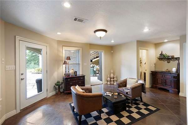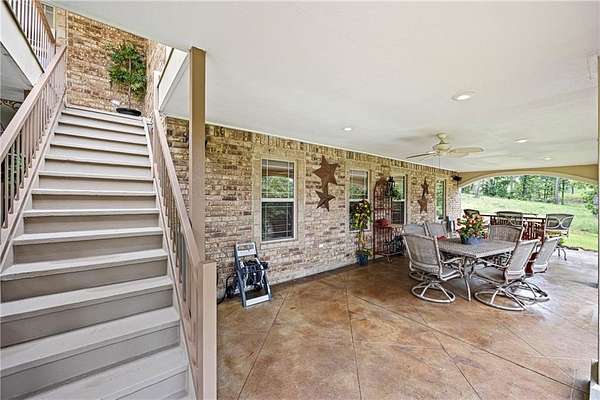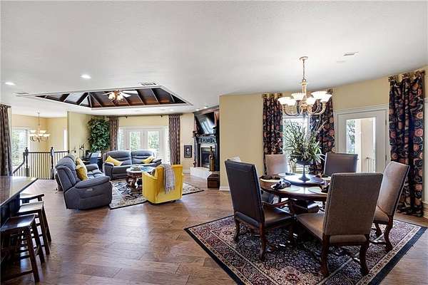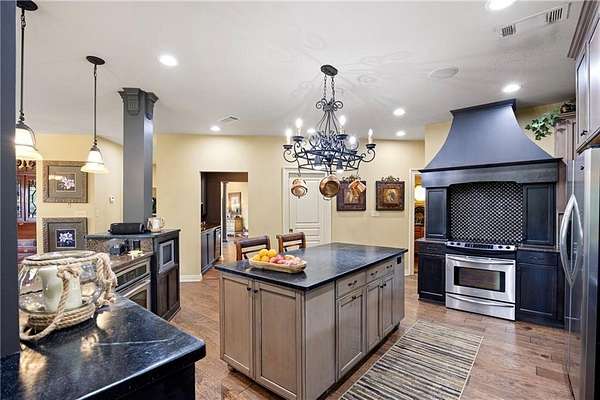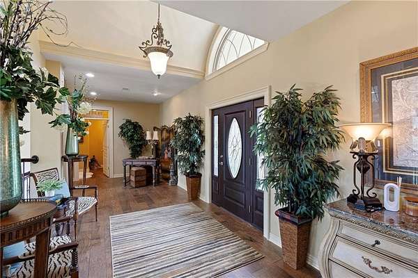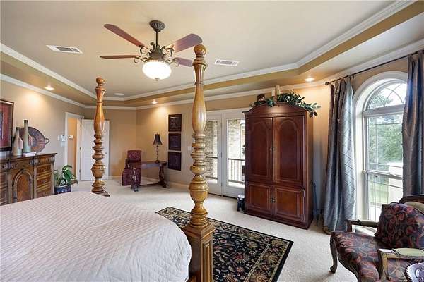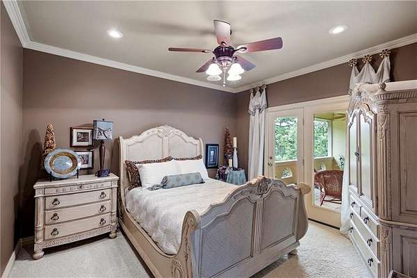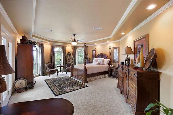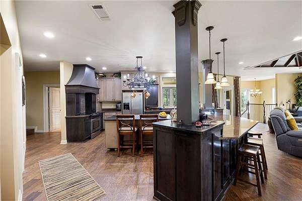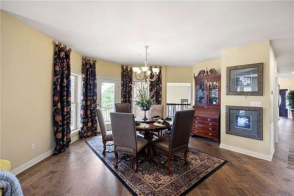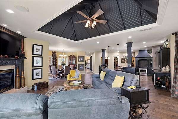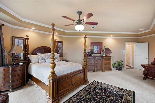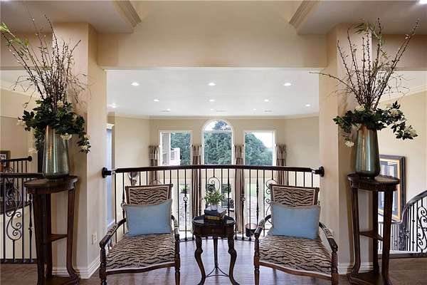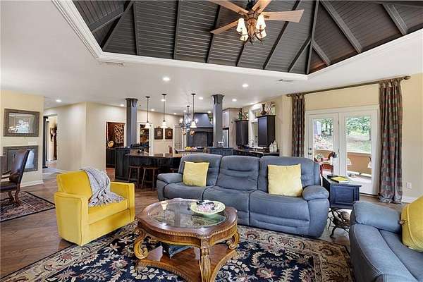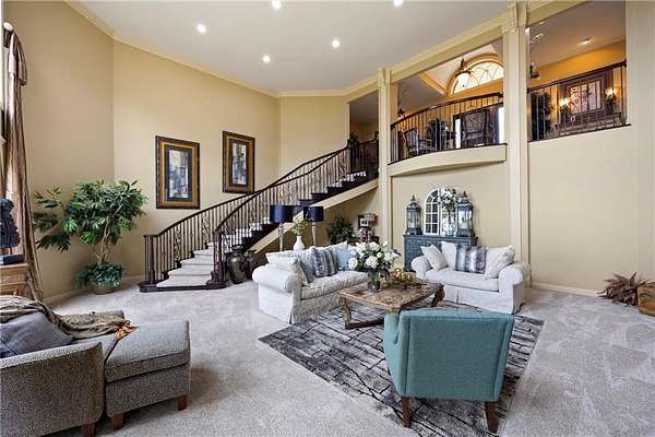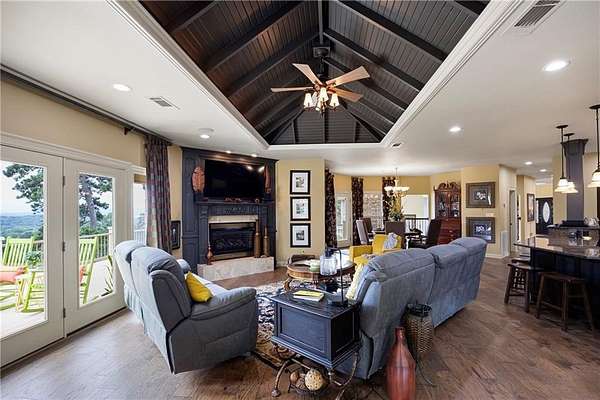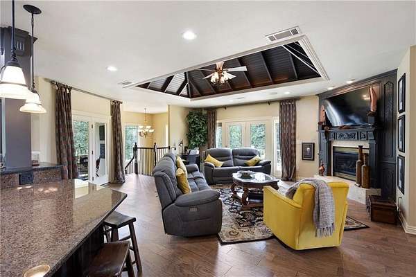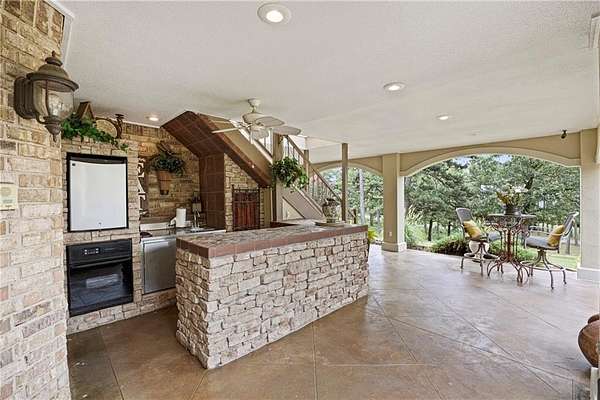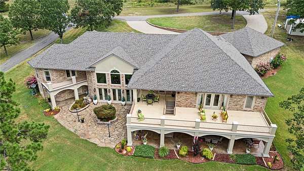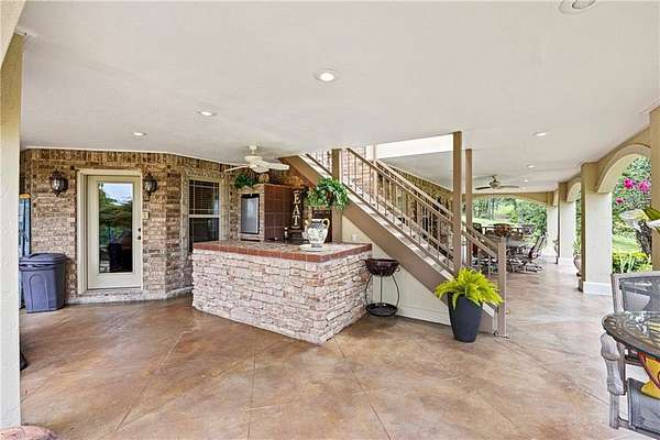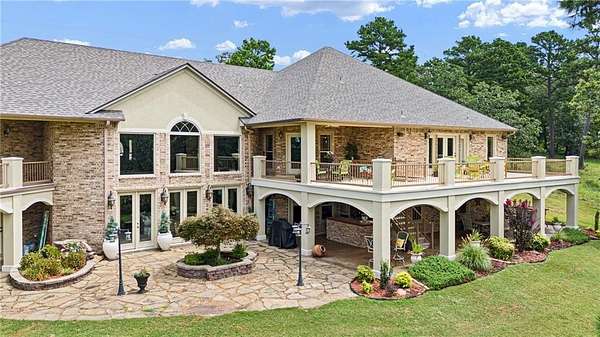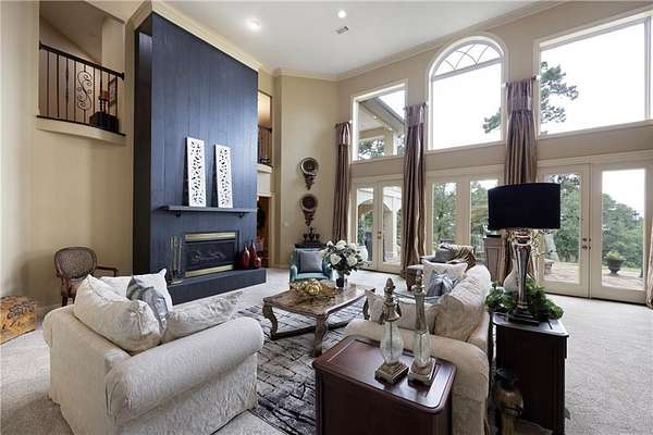Tucked away in peaceful seclusion, this stunning executive home offers panoramic lake views from nearly every room. Designed for both relaxation and entertaining, the outdoor spaces are truly an extension of the home -- complete with multiple seating areas and a full outdoor kitchen, perfect for enjoying quiet mornings or evenings under the stars. Inside, the open-concept living area is flooded with natural light, thanks to a wall of windows that perfectly frame the water beyond. A custom, gracefully winding staircase anchors the space, adding a touch architectural flair.