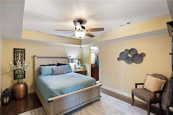 - Blinds, Built-In Ironing Board, Built-Ins, Cathedral Ceiling, Ceiling Fans, Central Vacuum, Eat-in-Kitchen, Granite Counters, Smoke Detector, Split Floor Plan, Walk-In Closets, Wet Bar, Wired For Sound