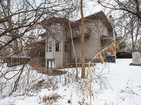 Executive 4,500+ sq ft home on wooded 2.56 acre lot. Brick front & welcoming front porch w/ seating area invites guests into open foyer. Entry office or ensuite has connected full bathroom. Layout features sunken living room w/ fireplace, formal dining w/ inviting window seat, and open kitchen w/ breakfast nook. Cozy den w/ screened porch access and 2-sided fireplace connect sunroom including wet bar and deck access. Main level laundry room has entrance to oversized 3.5 car garage. Owner's suite has barreled ceiling, wall fireplace, walk-in closet, private deck, updated bathroom w/ double sinks, corner whirlpool tub & separate shower. Bedrooms 3 & 4 have private vanities w/ adjoining bathroom. Finished lower-level w/ exposed walkout, family & bonus rooms, walk-in gun closet & hunter's stainless prep kitchen. Enjoy time outdoors on composite deck w/ recessed hot tub, bonfire area, playhouse/storage shed & home backup generator. Wooded lot backs up to cornfield w/ abundance of wildlife.